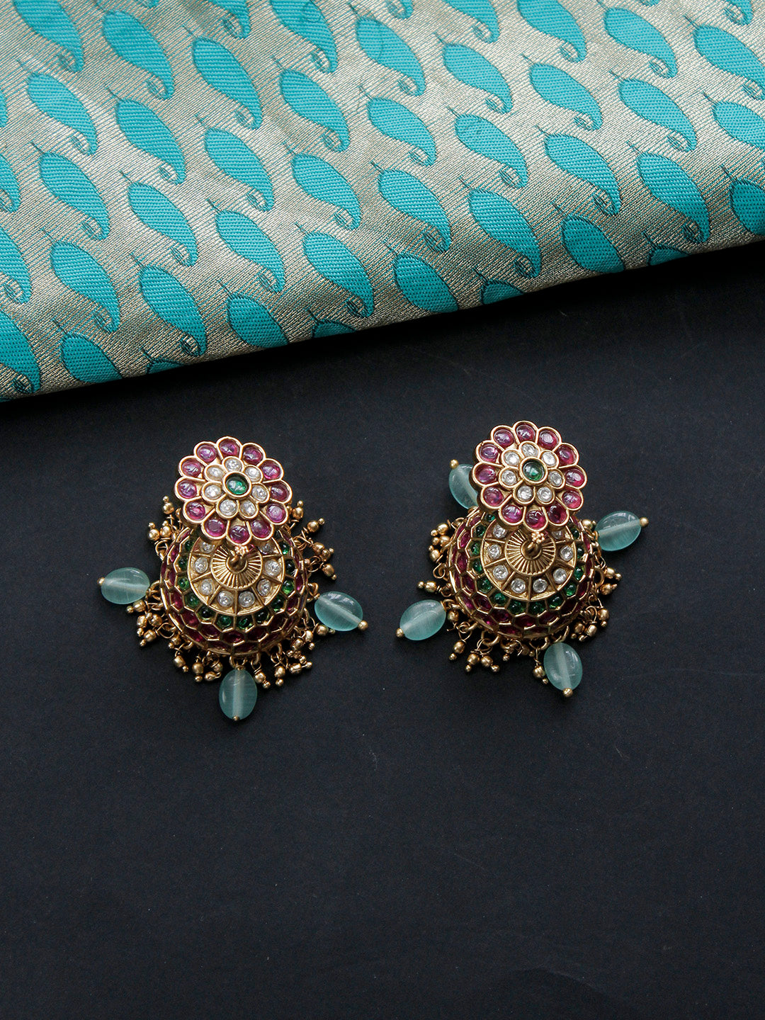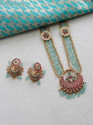 Premium Kempu Haaram with Green Onyx, Kundan Stones, and Gold Detailing