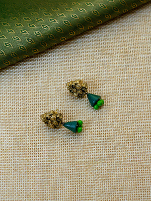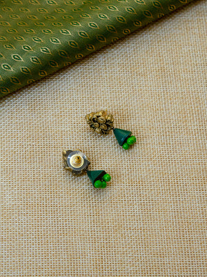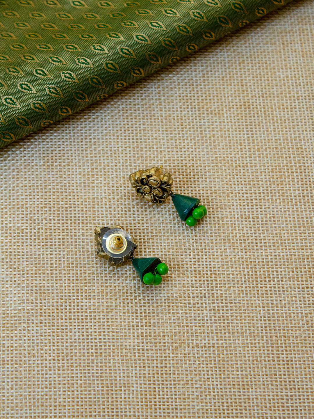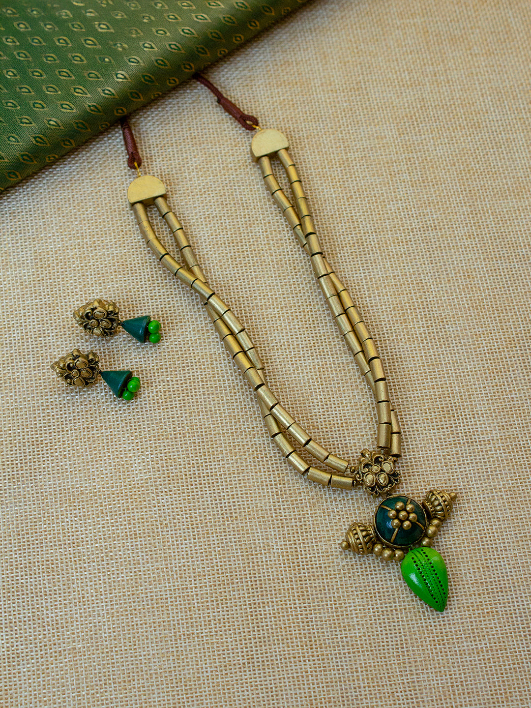 Beautifully Handcrafted Geometric Two Layer Terracotta Jewellery Set in Green & Antique Gold