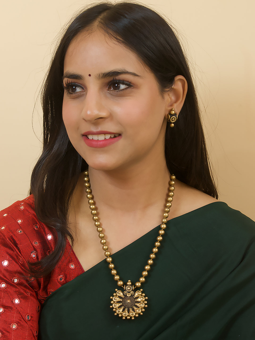 Antique Gold Mandala Design Circular Pendant Mala Handmade Terracotta Necklace Set