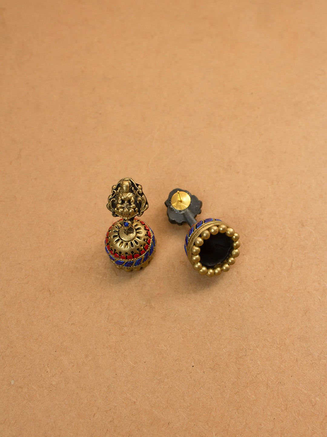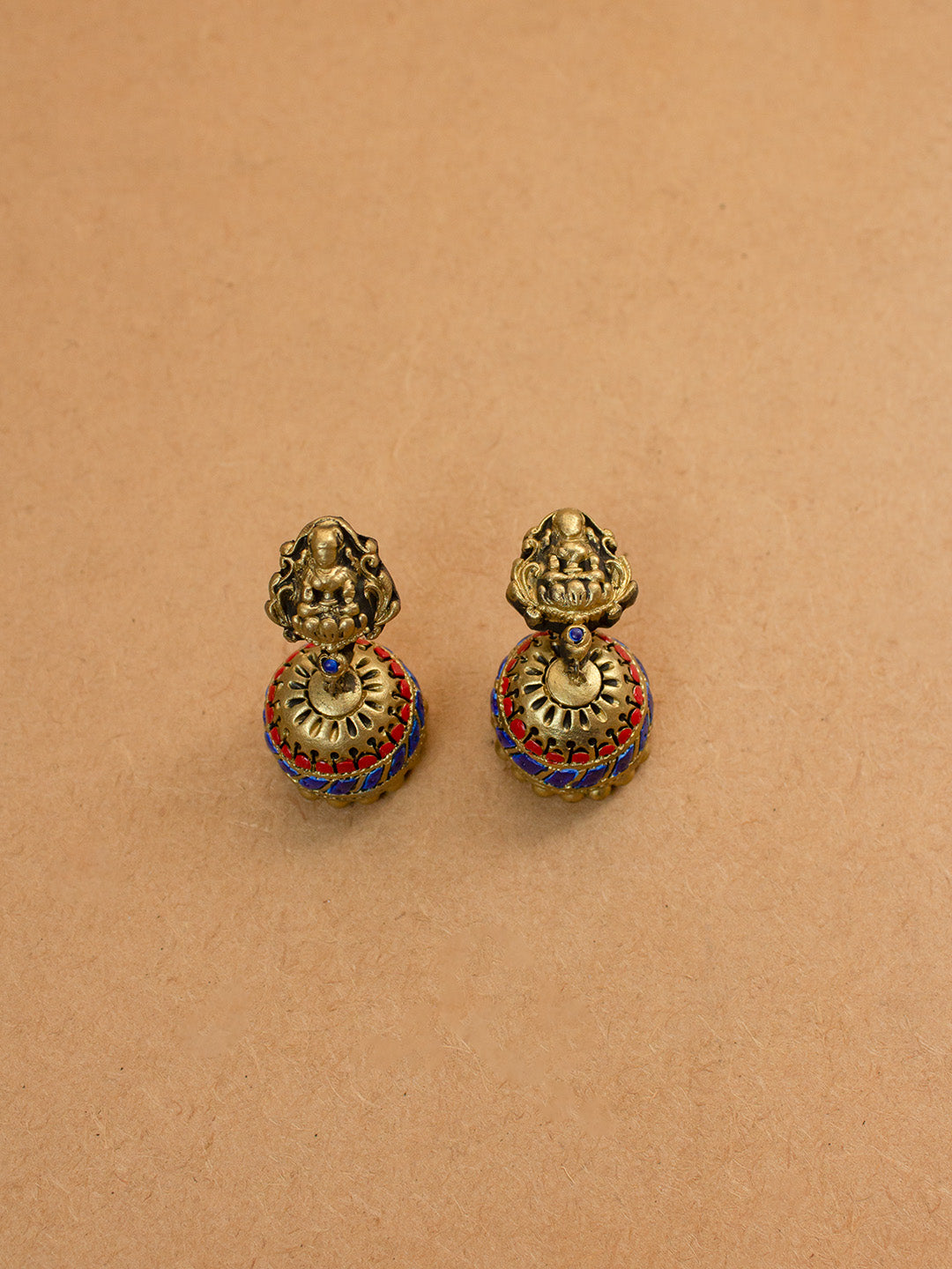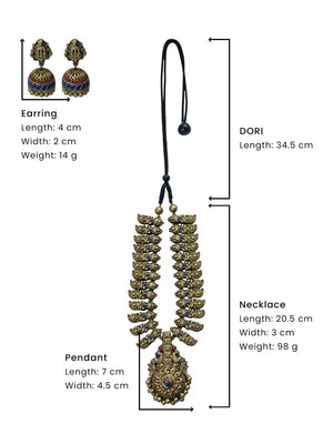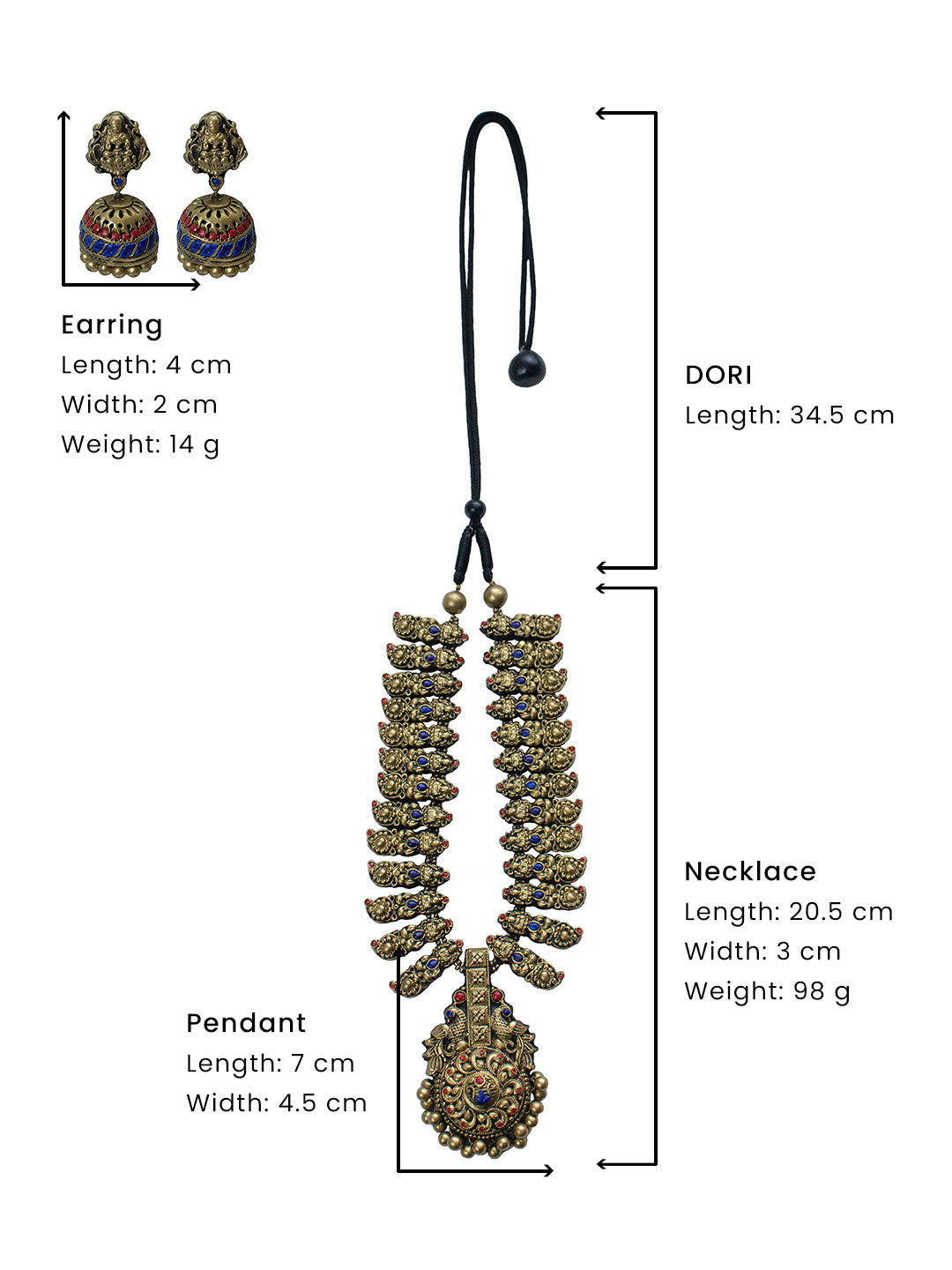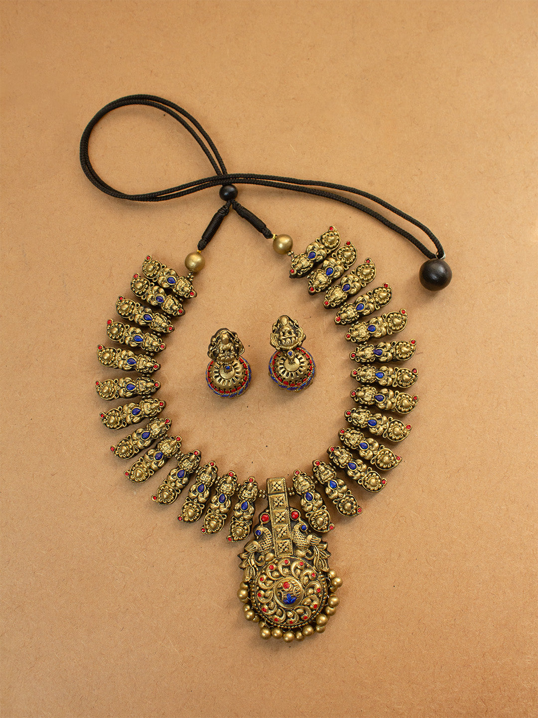 Mayura Sri — Antique Gold Red and Blue Peacock and Lakshmi Design Handmade Terracotta Necklace Set