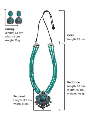 Shubhrangi — Aqua Blue Silver Three Layered Victorian Haram Style Handmade Terracotta Necklace Set