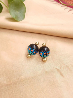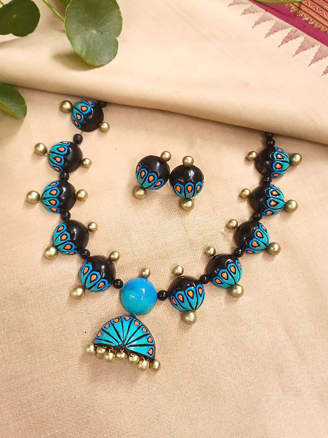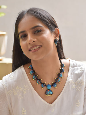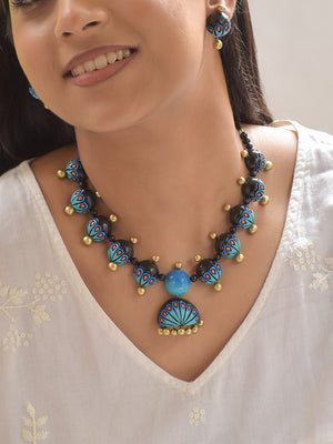 Nilaara - Azure Bloom Blue Black Handcrafted Terracotta Necklace Set with Stud Earrings
