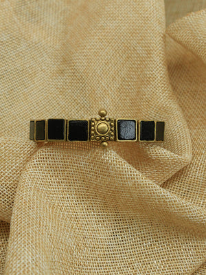 Black and Antique Gold Square Design Handmade Terracotta Bangle