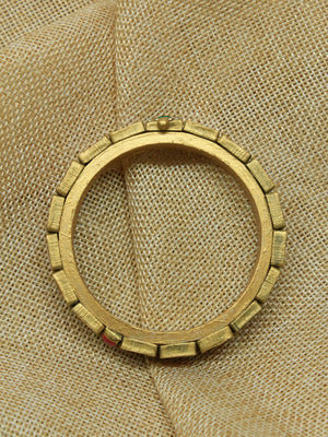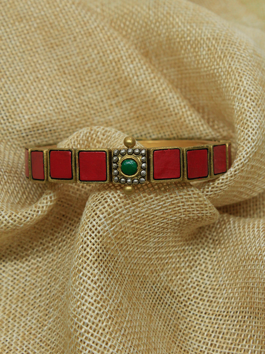 Komalika — Red Antique Gold Green Square Design Handmade Terracotta Bangle