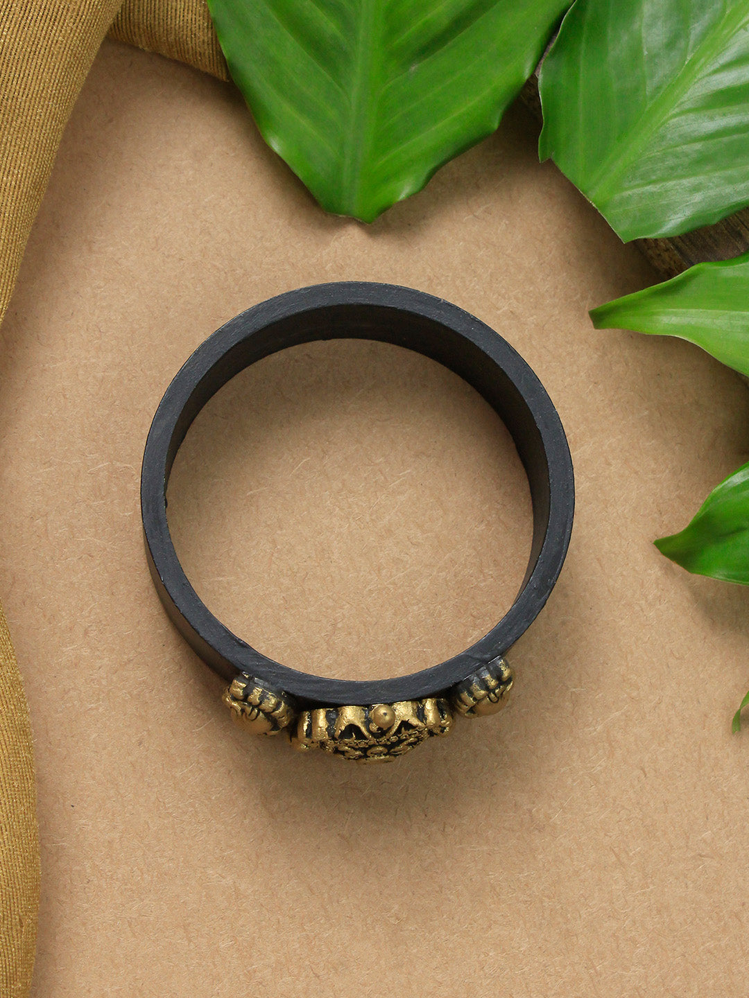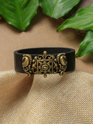 Kanchi Kada — Black Antique Gold Kada Style Peacock Design Handmade Terracotta Bangle