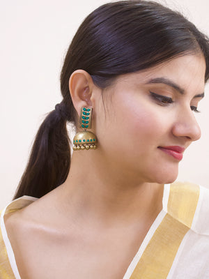 Leaf Design Hand Painted Terracotta Earrings