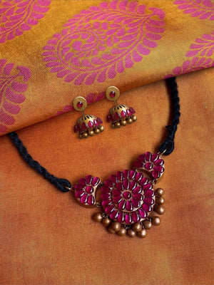 Smritika — Flower Design Hand Painted Finish Terracotta Jewellery Set