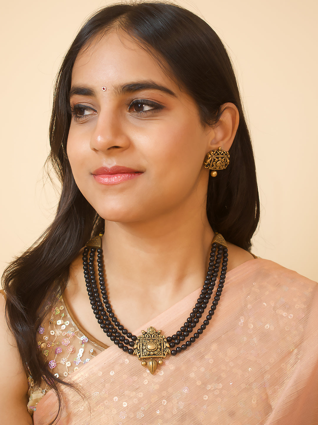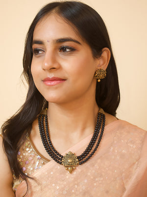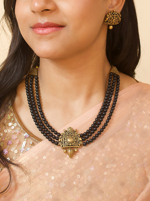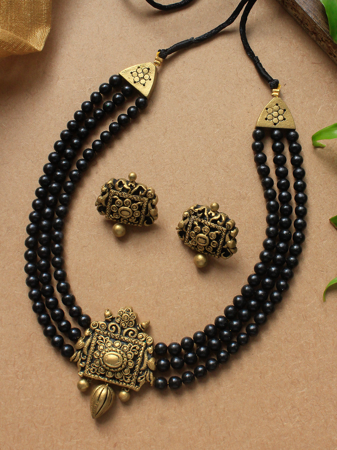 Samriddhi — Rani Haar Style Black Antique Gold 3 Layered Handmade Terracotta Necklace Set