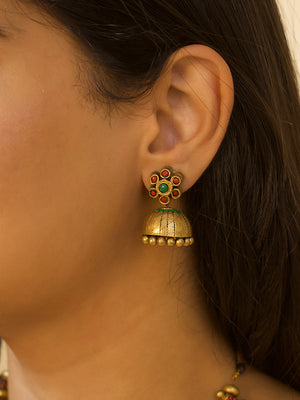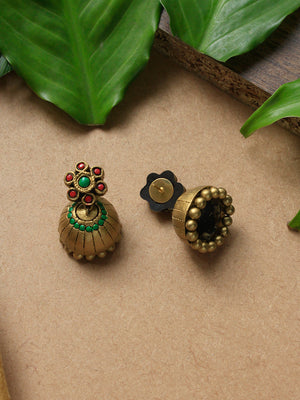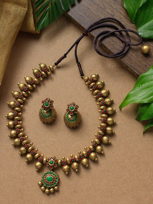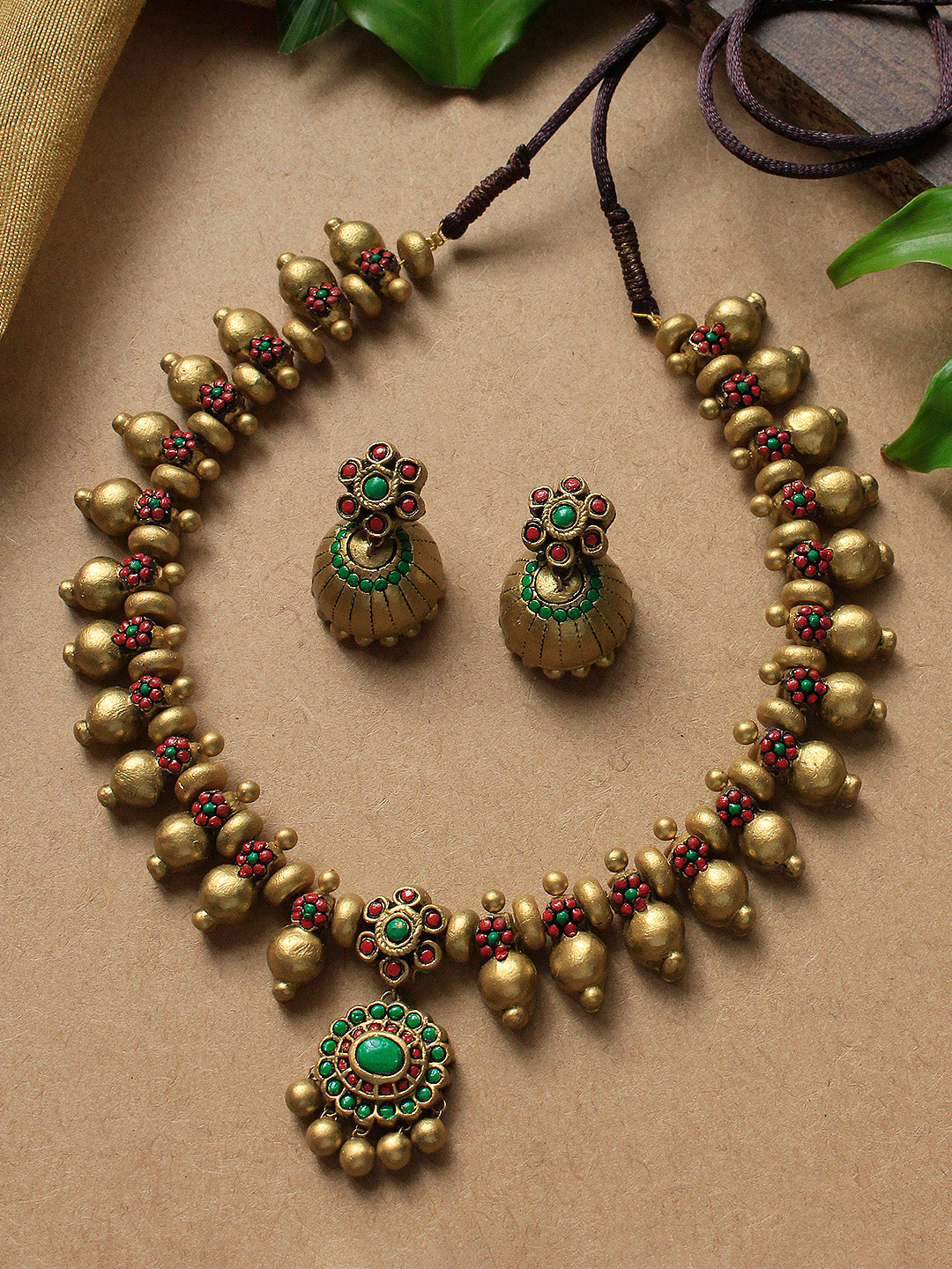 Padmasri — Antique Gold Red Green Floral Design Contemporary Style Handmade Terracotta Necklace Set