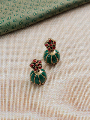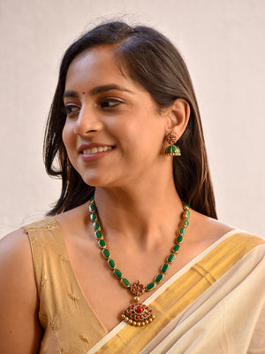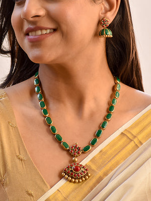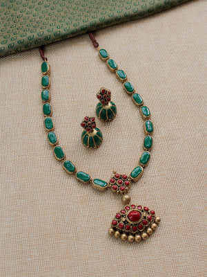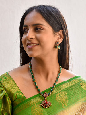 Ratnangi — Beautifully Handcrafted Oval Terracotta Jewellery Set in Emerald Green, Ruby Red & Antique Gold"