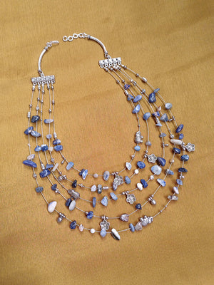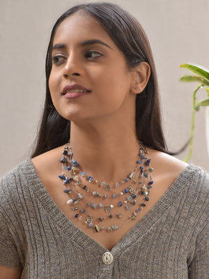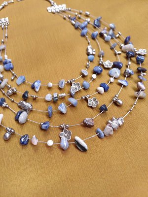 CieloMist – Layered Blue Agate Gemstone Necklace with German Silver Motifs