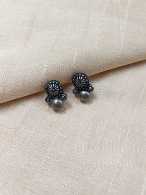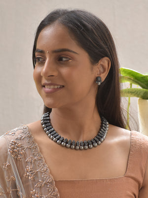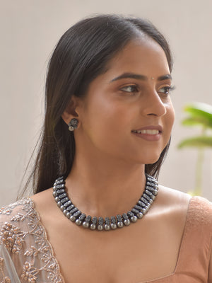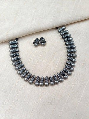 Rajniha - Elegant Oxidized Kolhapuri Beaded design in Silver color in Terracotta Beaded Necklace Set Stud Earrings