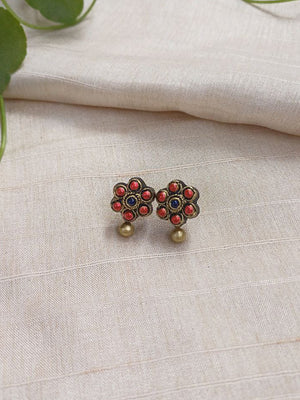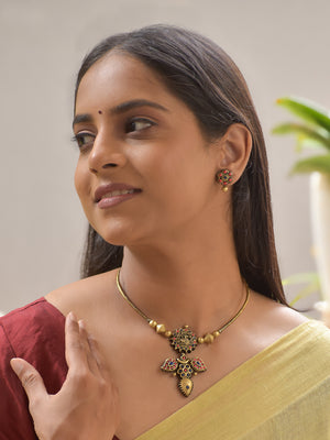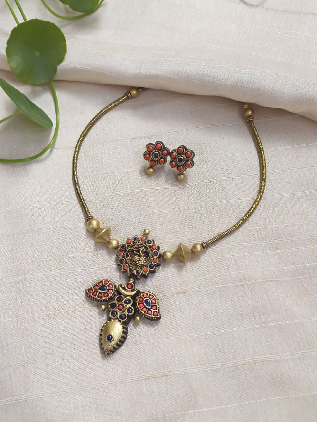 Kanakavalli - Floral Medley Antique Gold Terracotta Choker Set With Stud Earrings