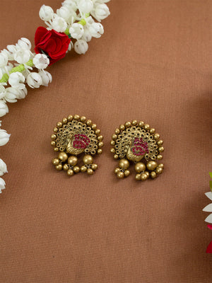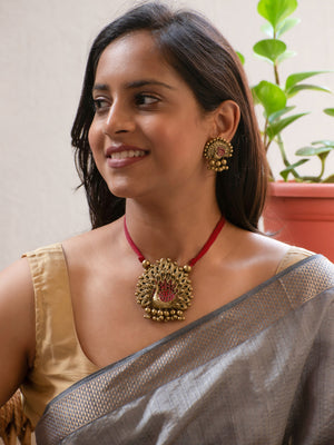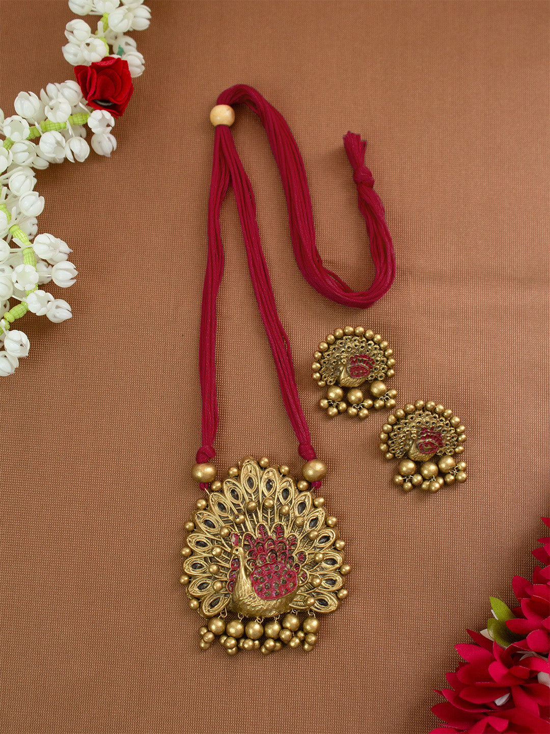 Gold and Maroon Design Handmade Terracotta Necklace Set