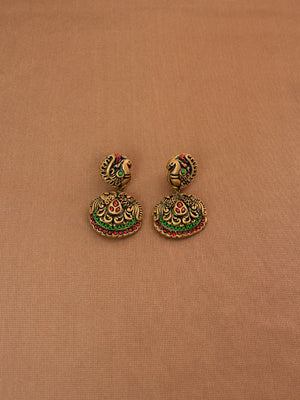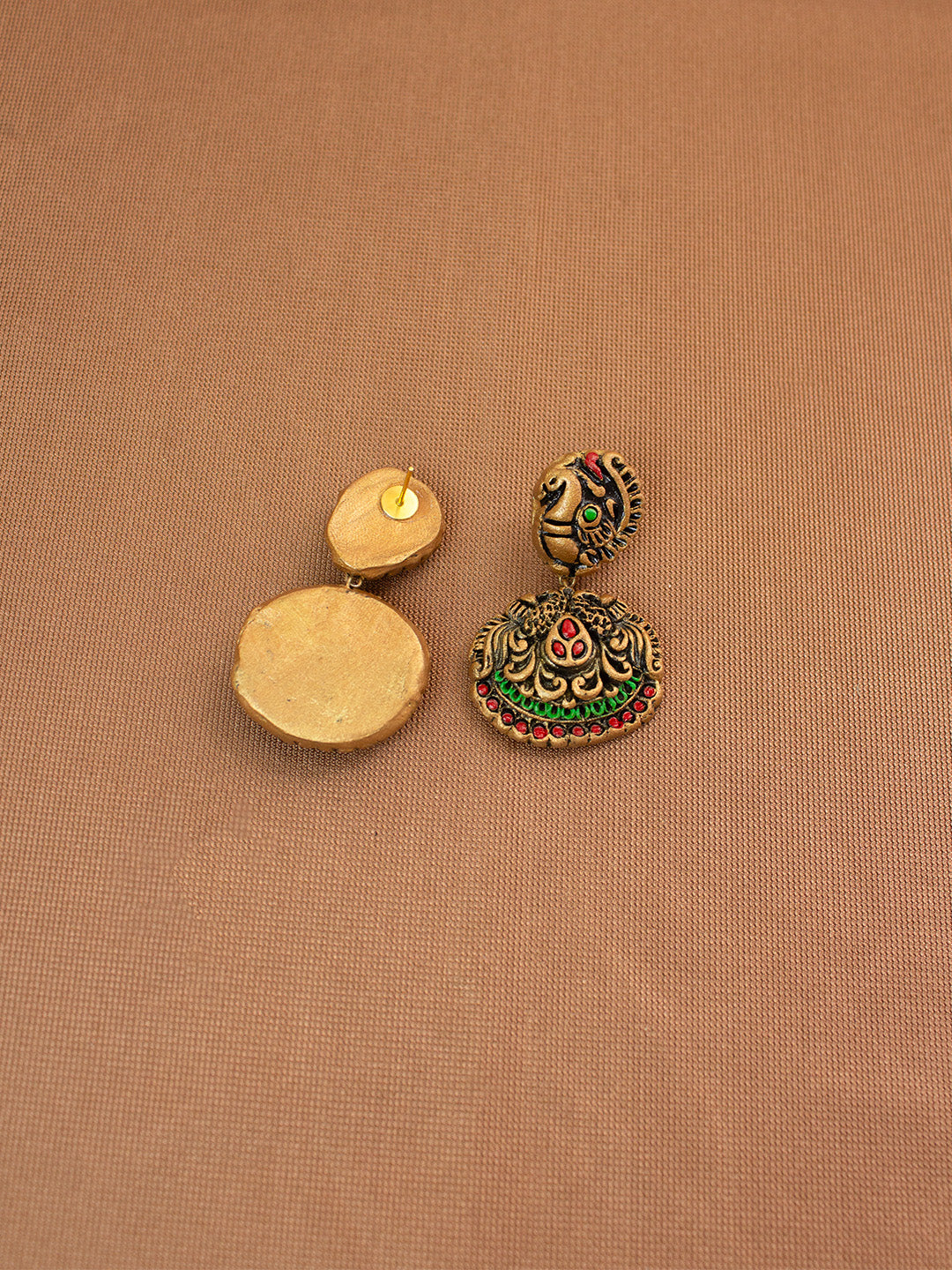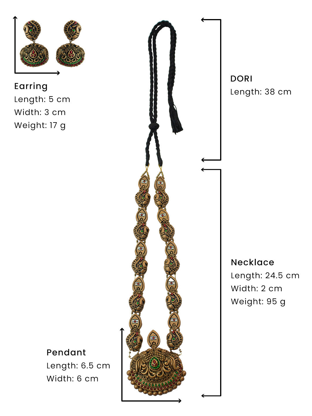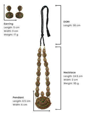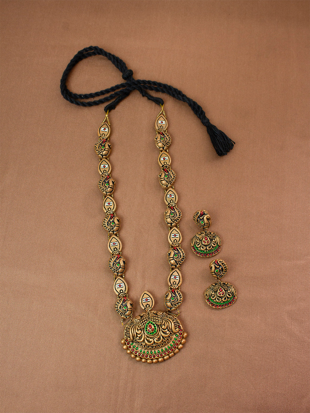 Gold Red and Green Murugar Design Handmade Terracotta Necklace Set
