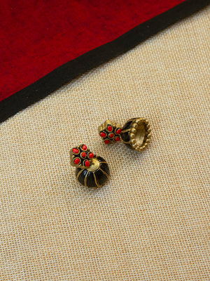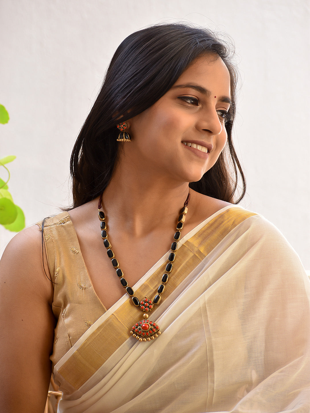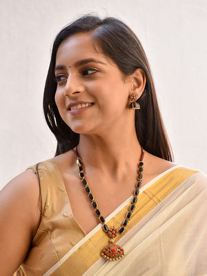 Handcrafted Floral Terracotta Jewellery Set in Black, Red & Antique Gold