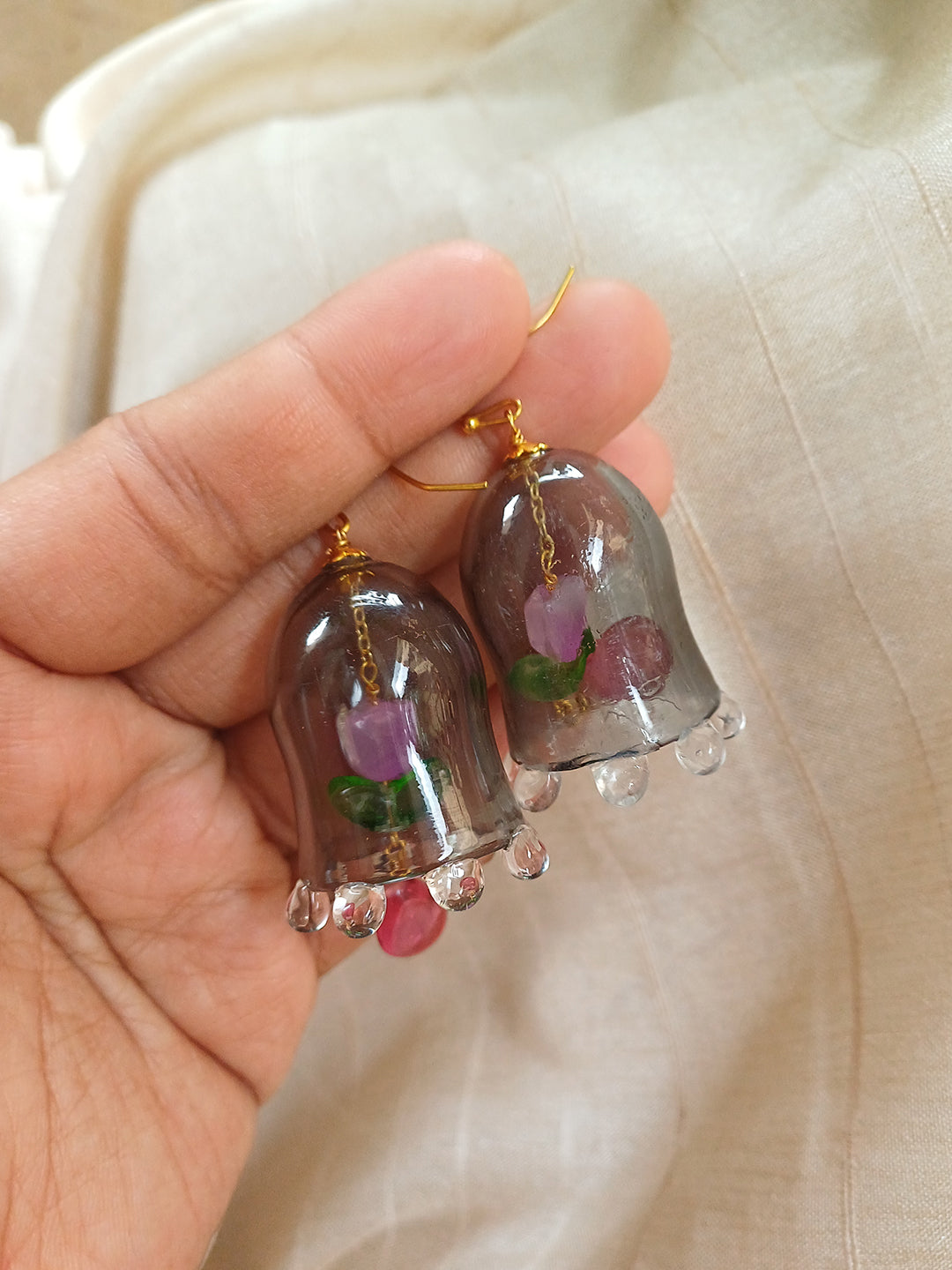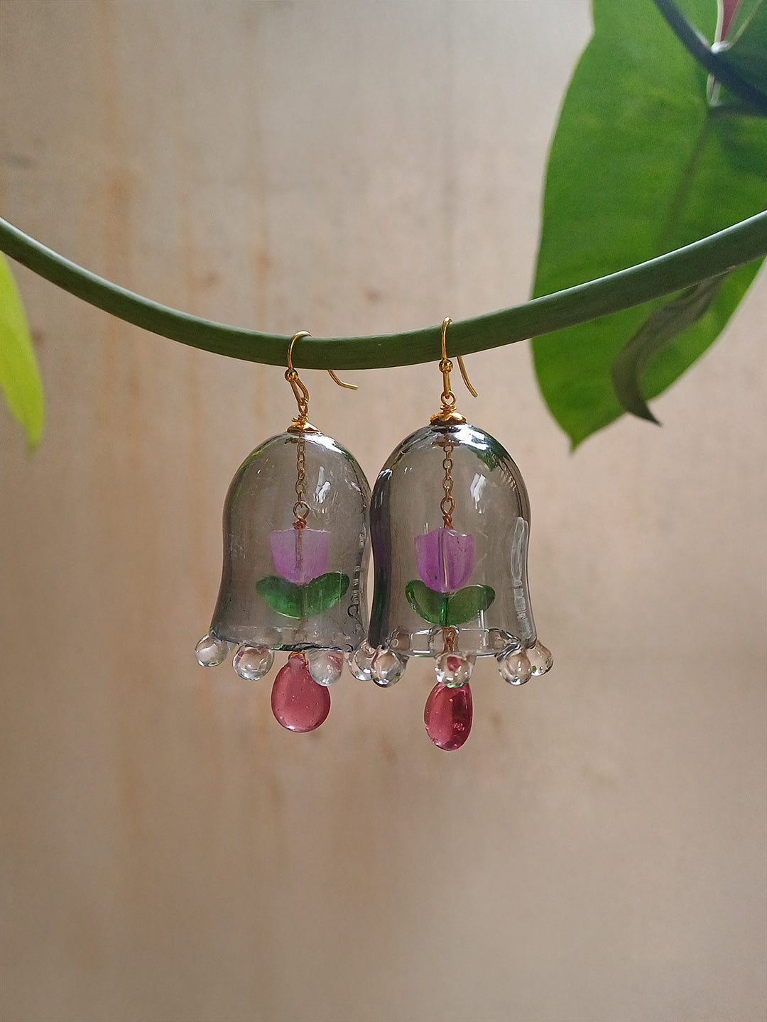 Handcrafted Glass Bell-Shaped Floral Earrings with Colorful Beads