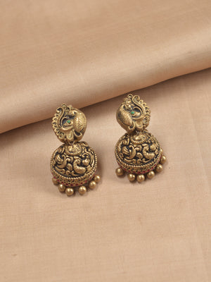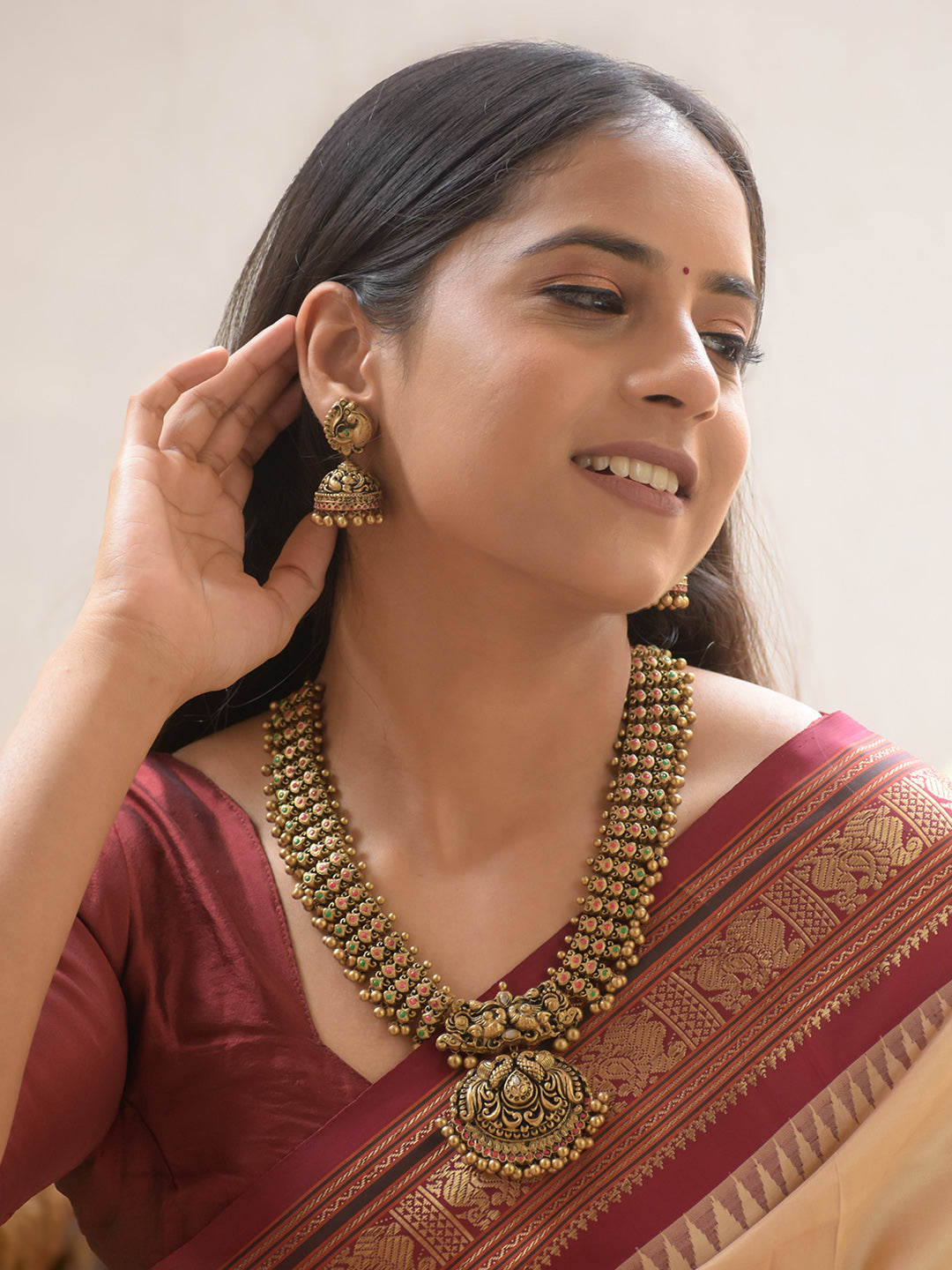 Priyaasi - Handcrafted Terracotta Peacock Motif Necklace Set with Colors Detailing and Antique Finish Earrings