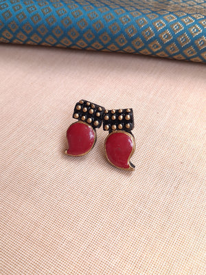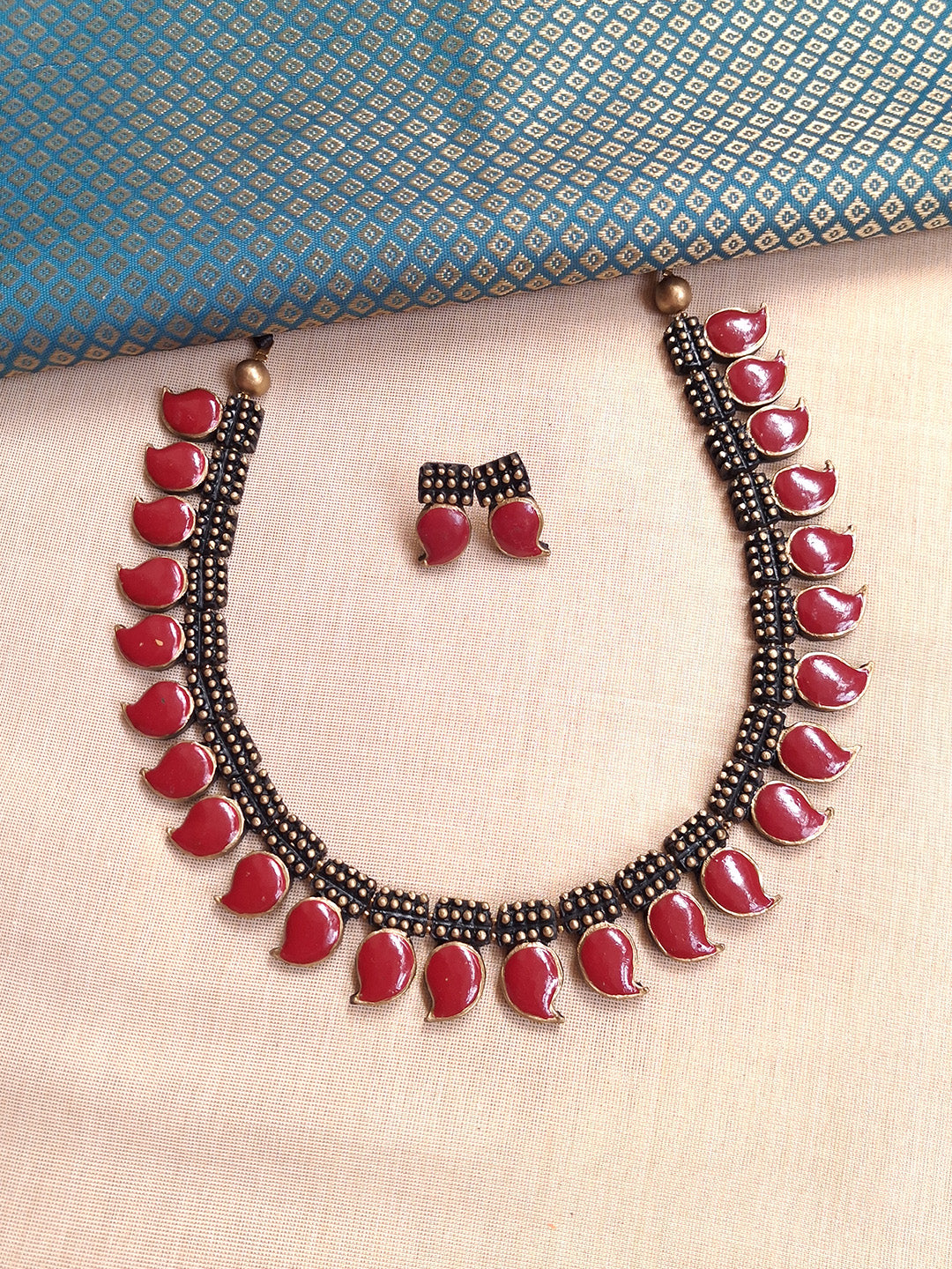 Handmade Terracotta Maroon Mango Motif Choker Necklace with Stud Earrings