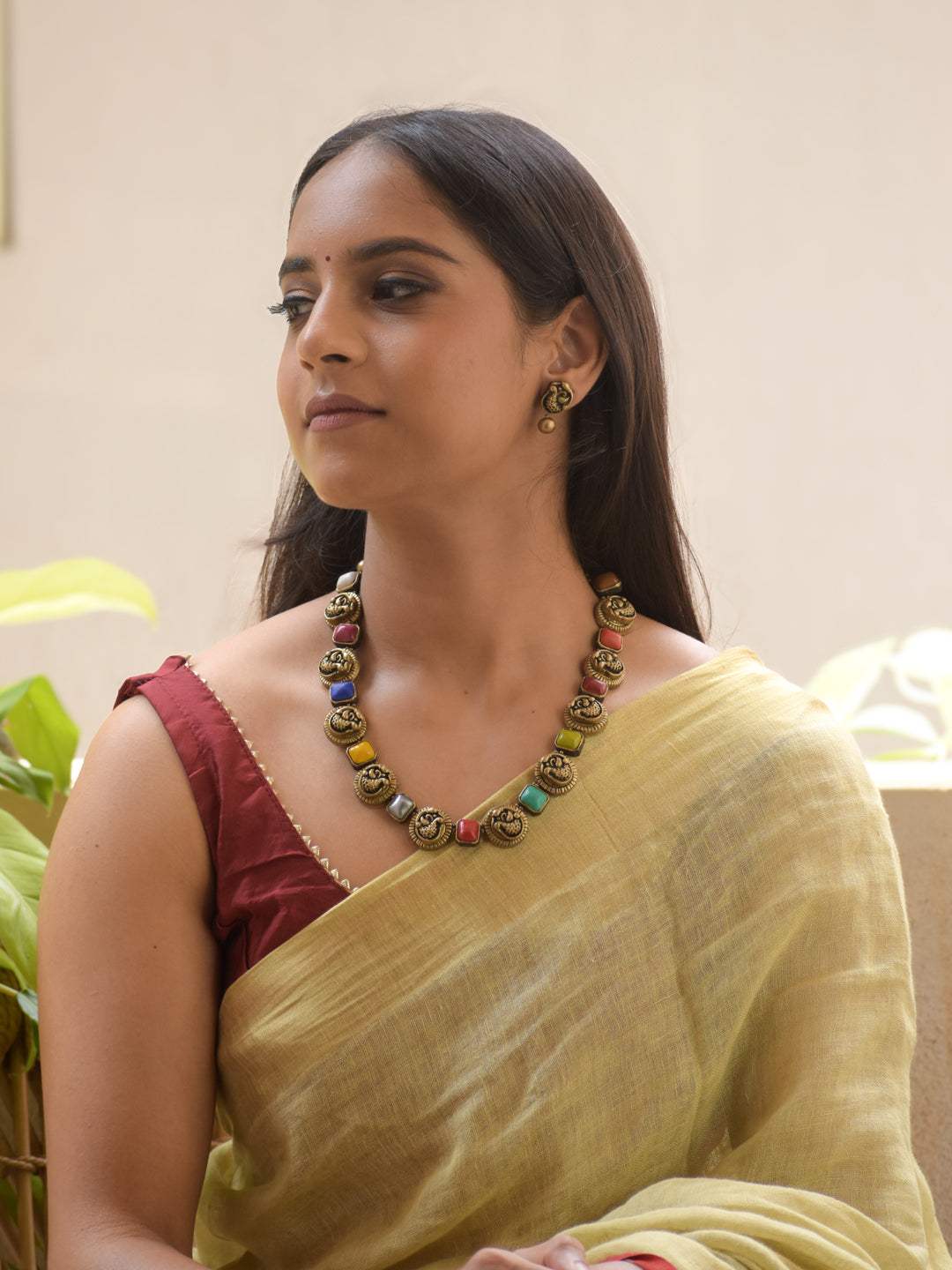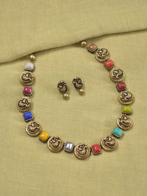 Navaratna Noor - Handmade Terracotta Navaratna Necklace Set – Ethnic Multicolor Charm Matching Earrings