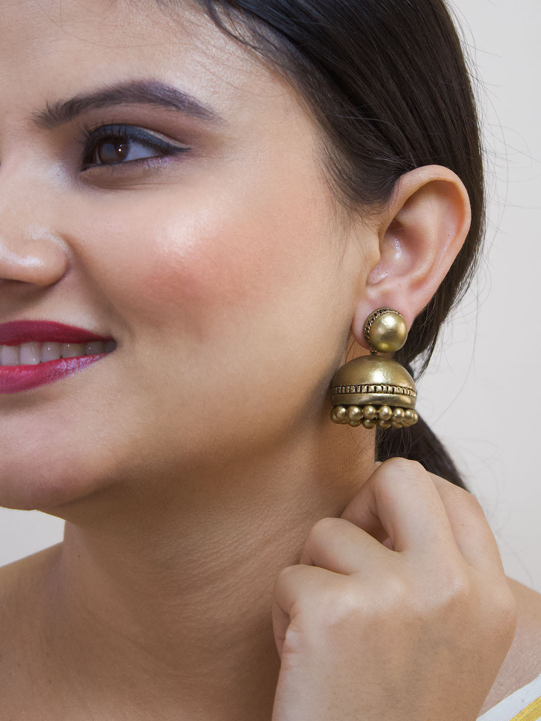 Anka Ruchi — Handmade Antique Gold Geometric Shape Terracotta Jhumka