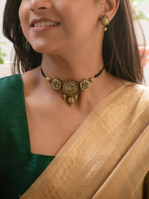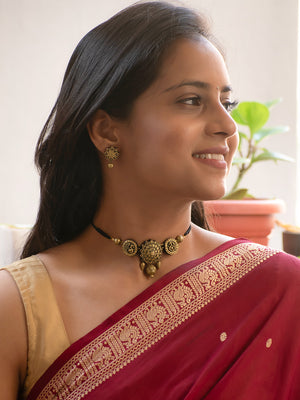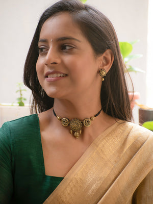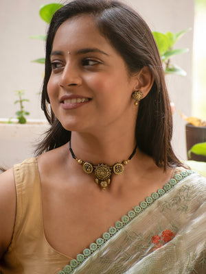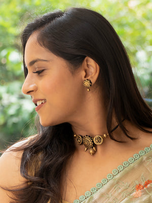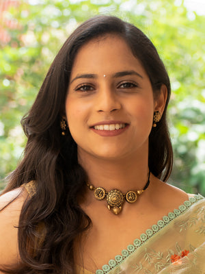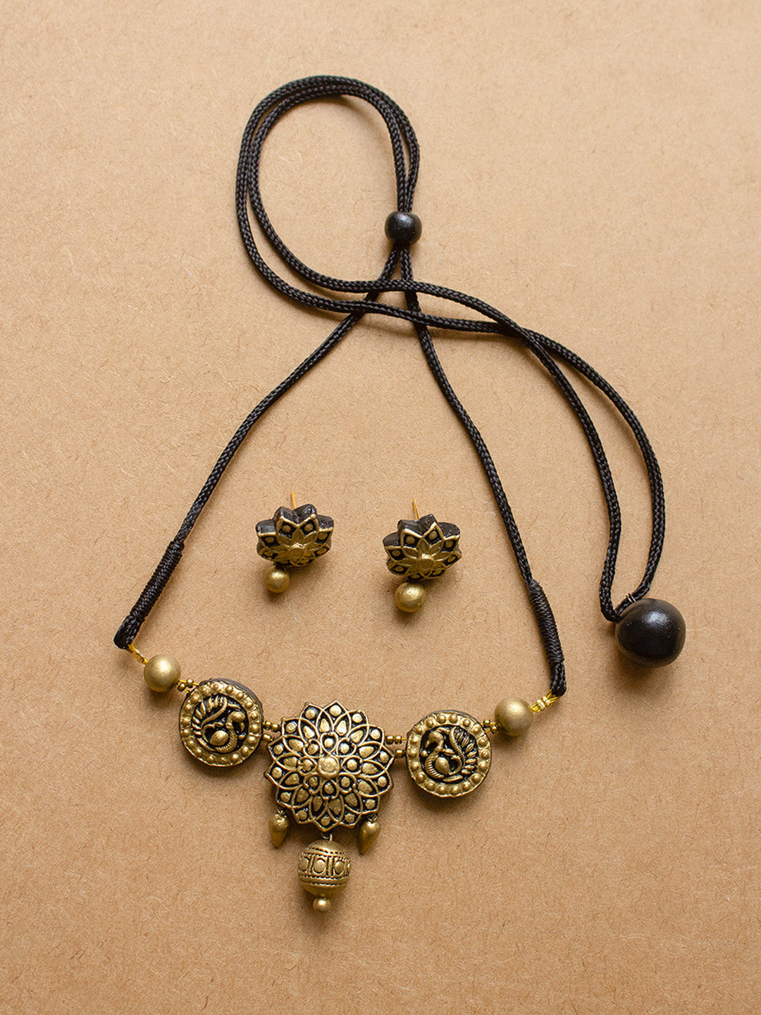 Ratan Tata Collection — Inspired by Legends Mandala and Peacock Art work Antique Gold Finish 100% Handmade Terracotta Choker Necklace Set