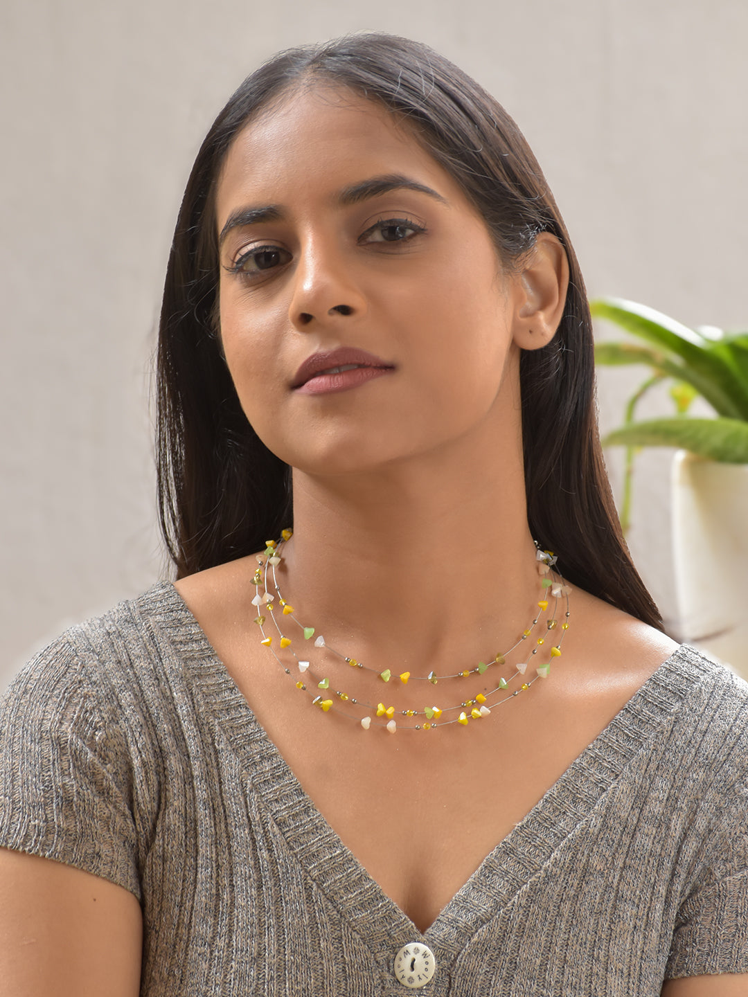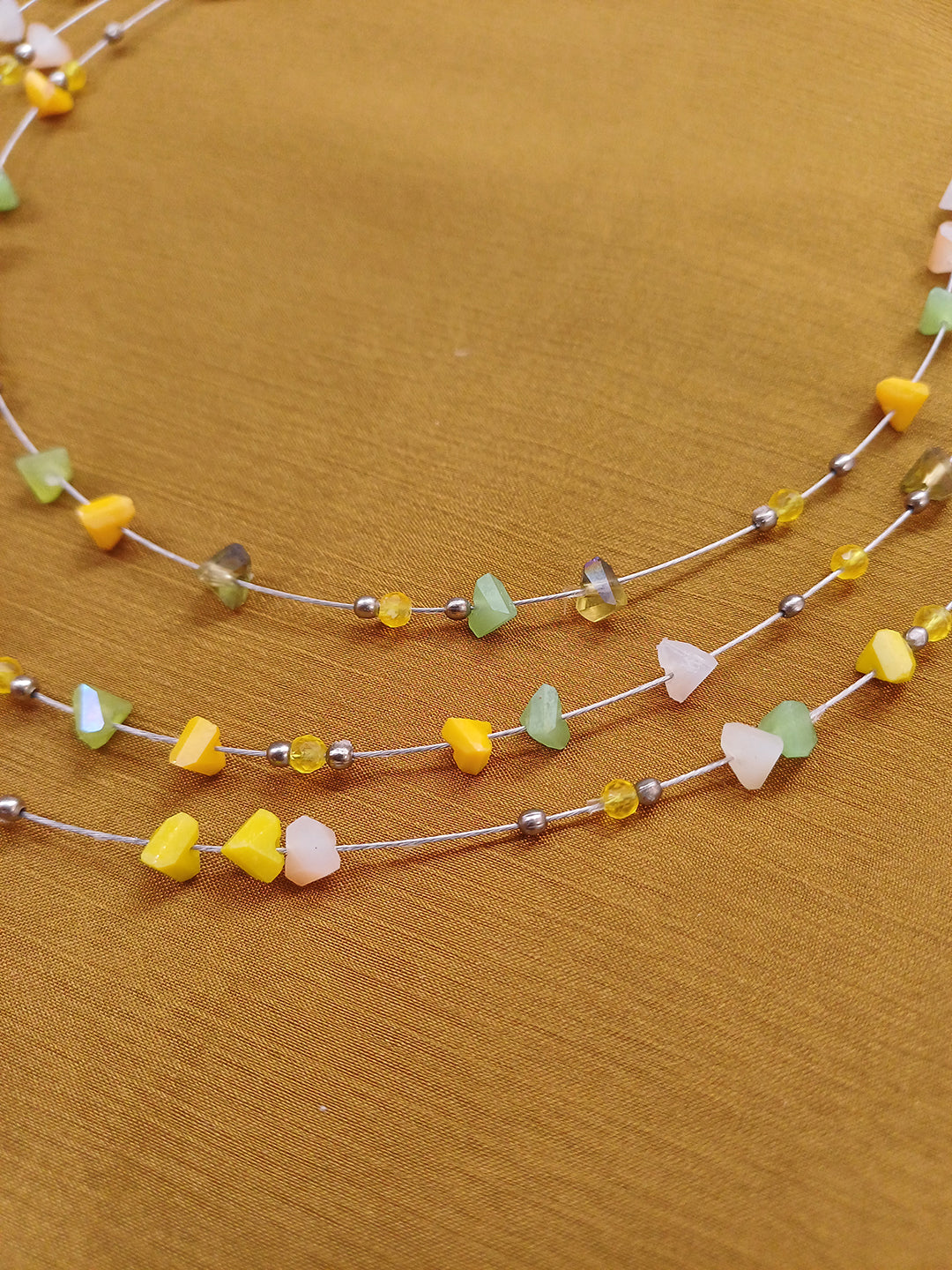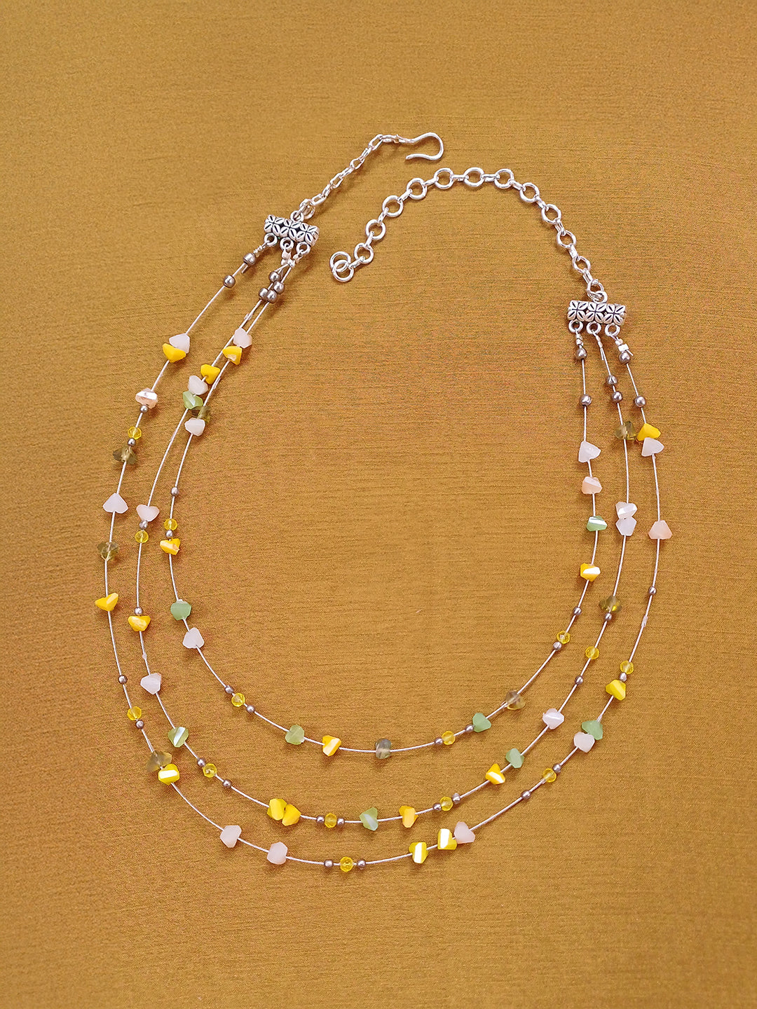 AuroraMist – Multi-Color Agate Stone Multi-Layer Necklace with German Silver Accents