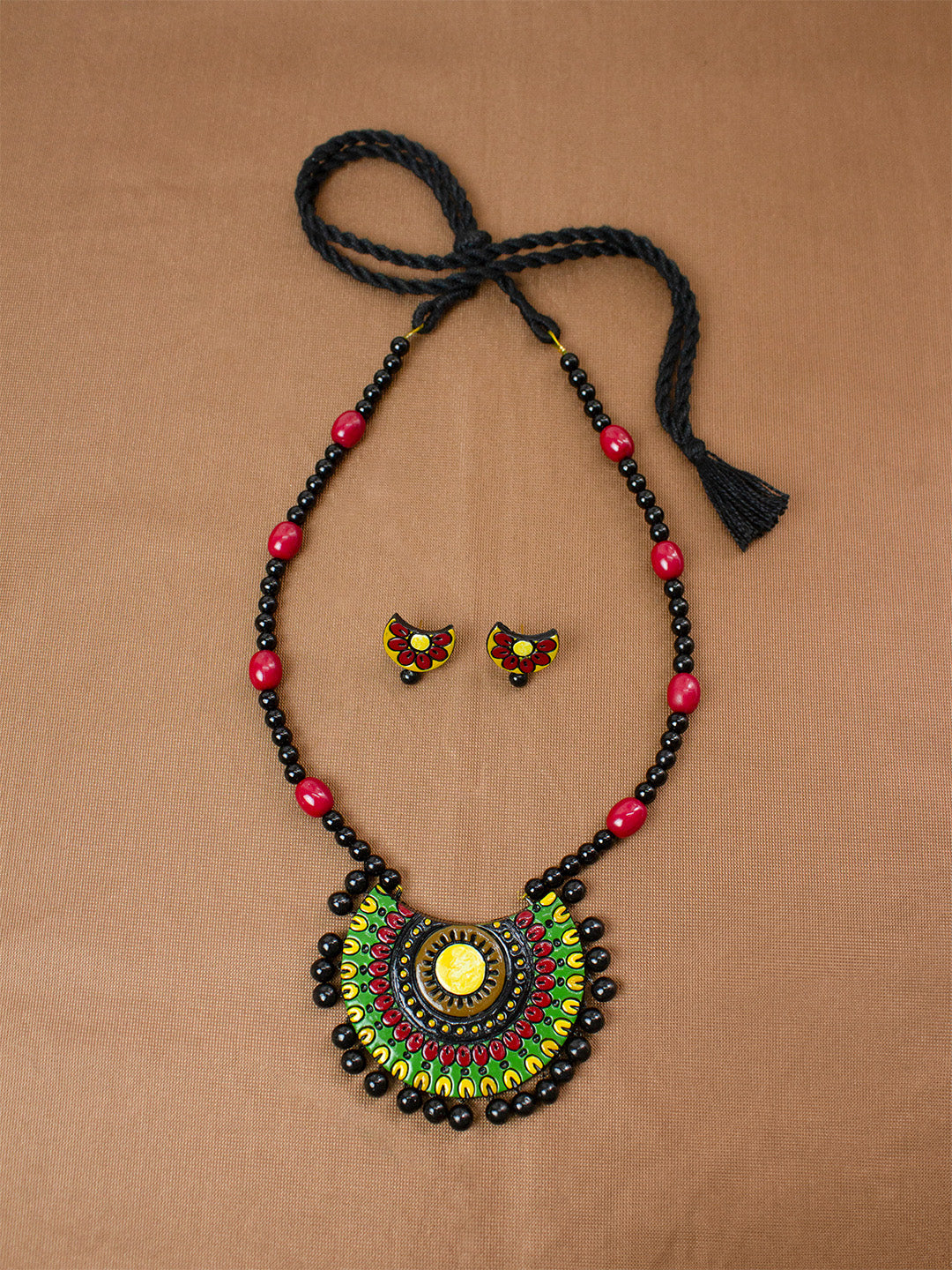 Multicolor Abstract Design Handmade Terracotta Necklace Set