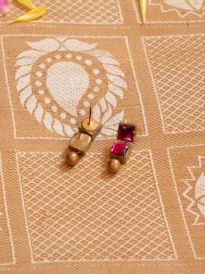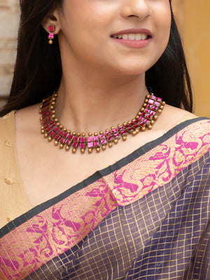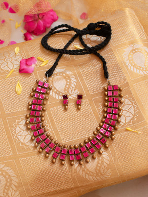 Rochika — Pink and Gold Square Design Pattern Kundan Fusion Handmade Terracotta Necklace Set