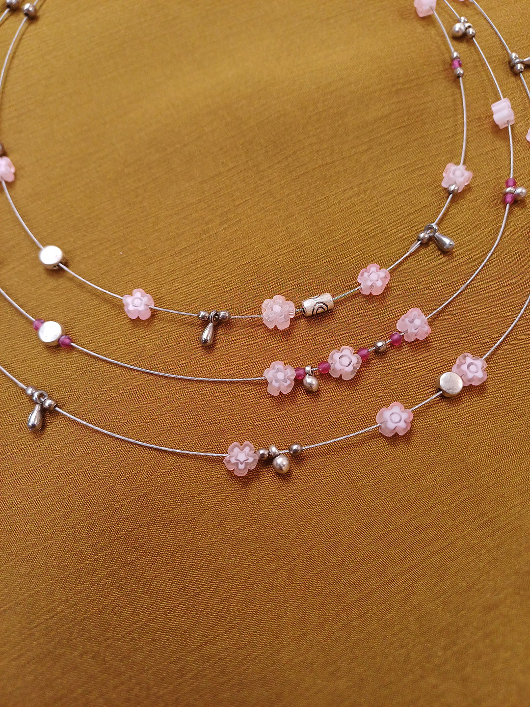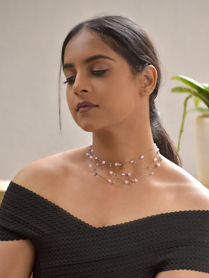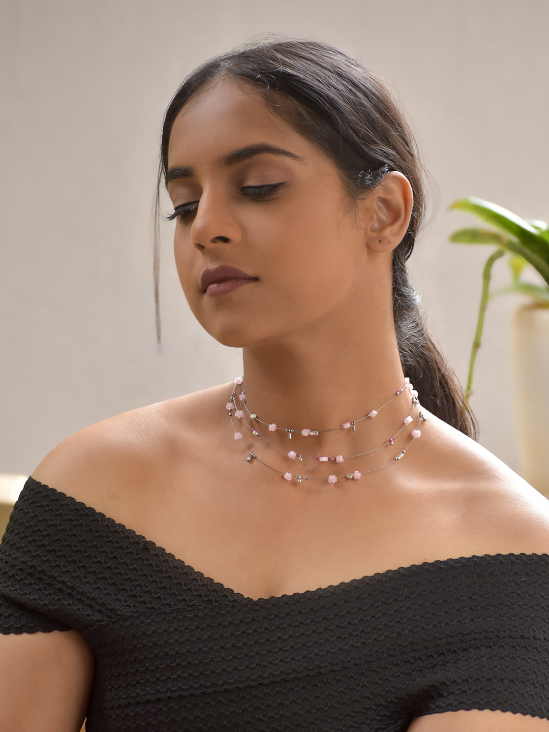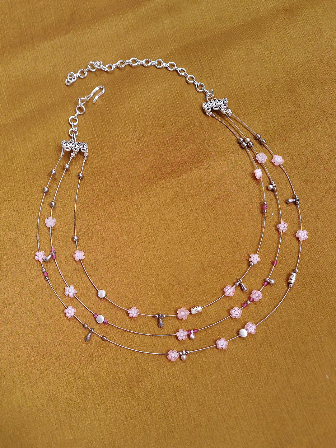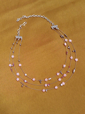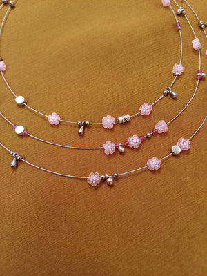 RoséBloom – Multi-Layer Pink Floral Beaded Necklace with German Silver Accents