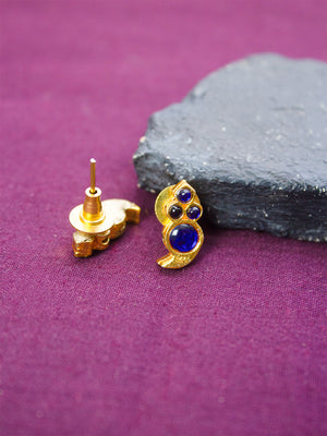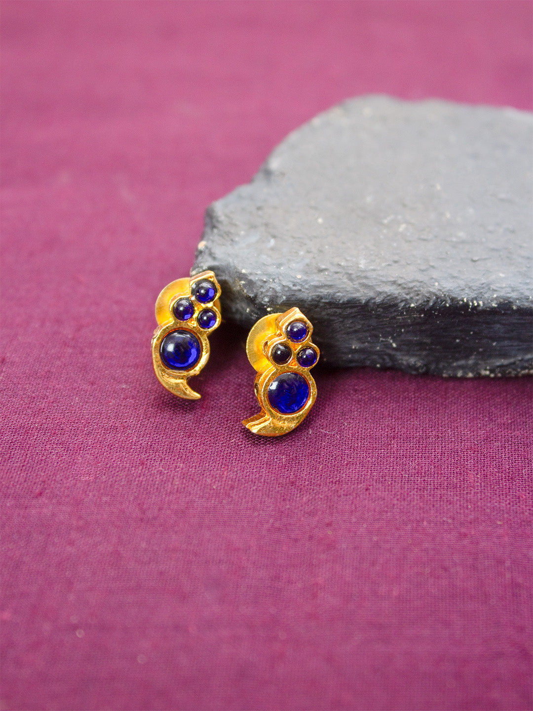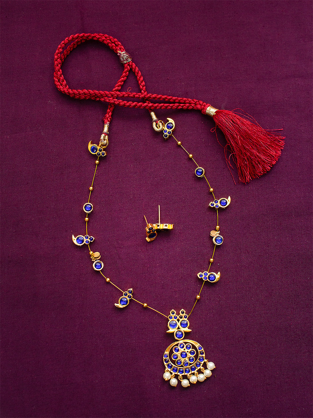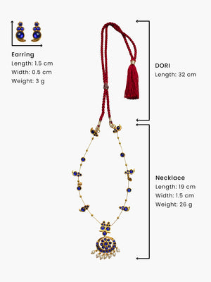 Premium Gold Finish Blue Single Layer Kemp Stones Necklace Set