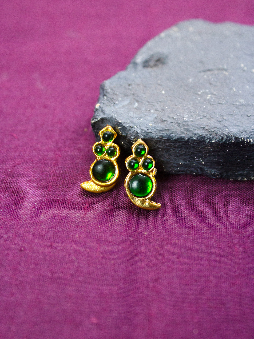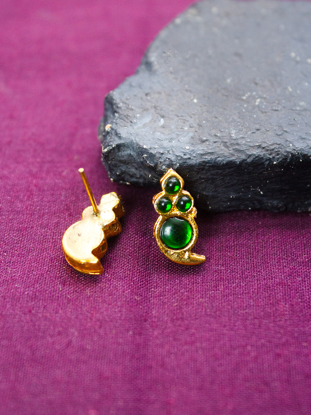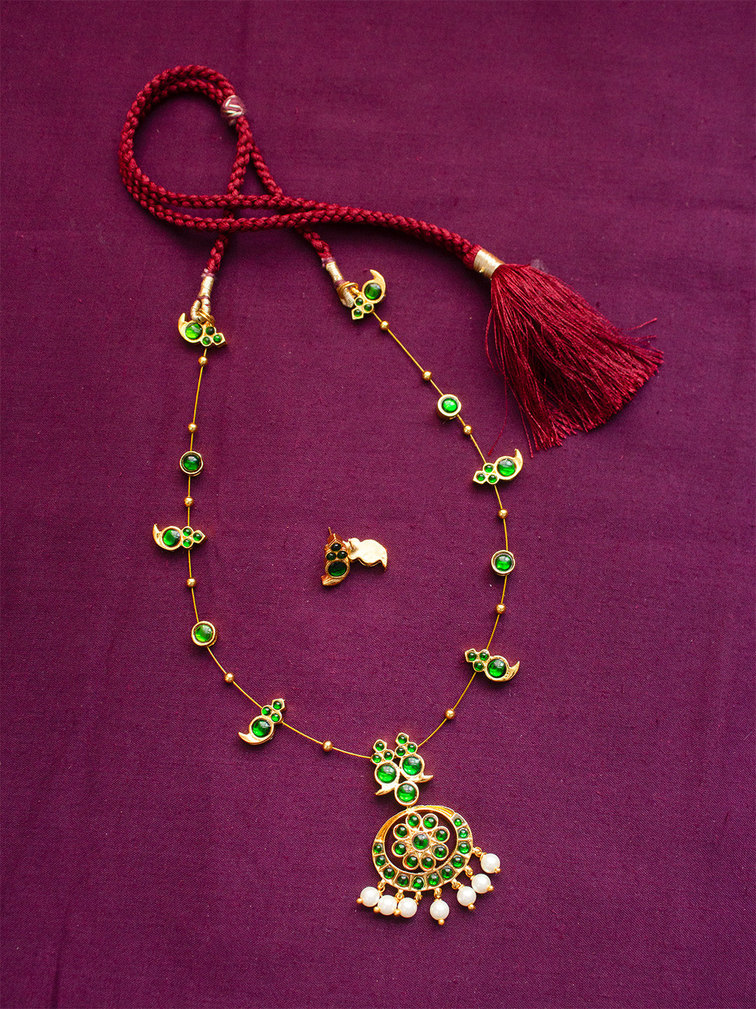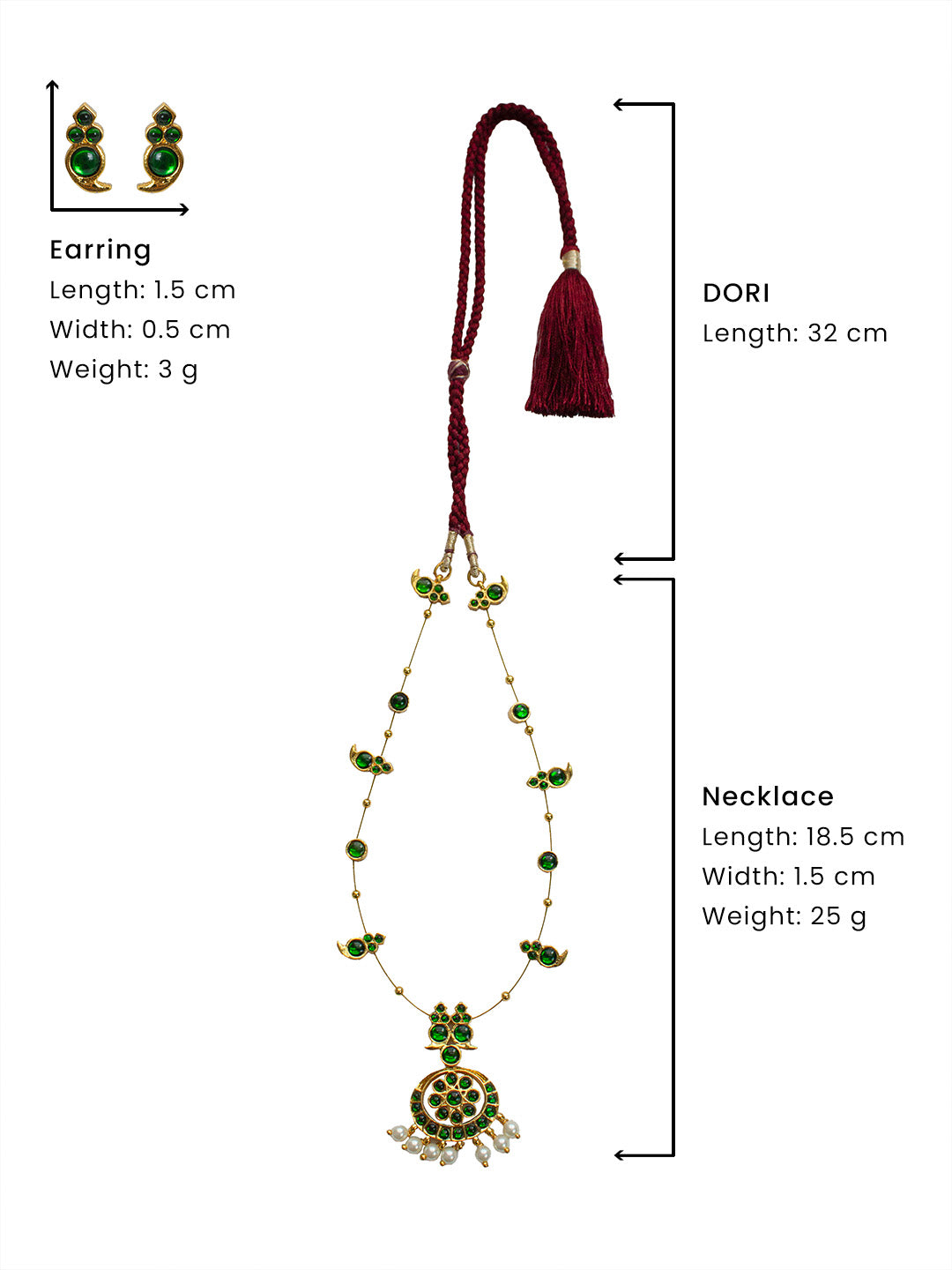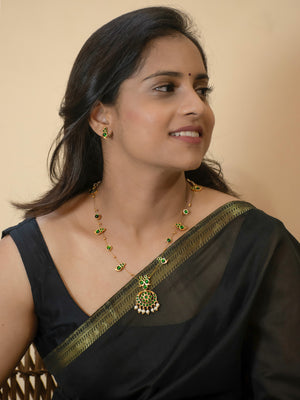 Premium Gold Finish Green Single Layer Kemp Stones Necklace Set