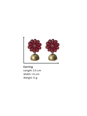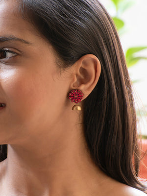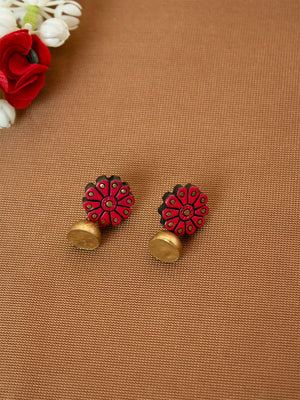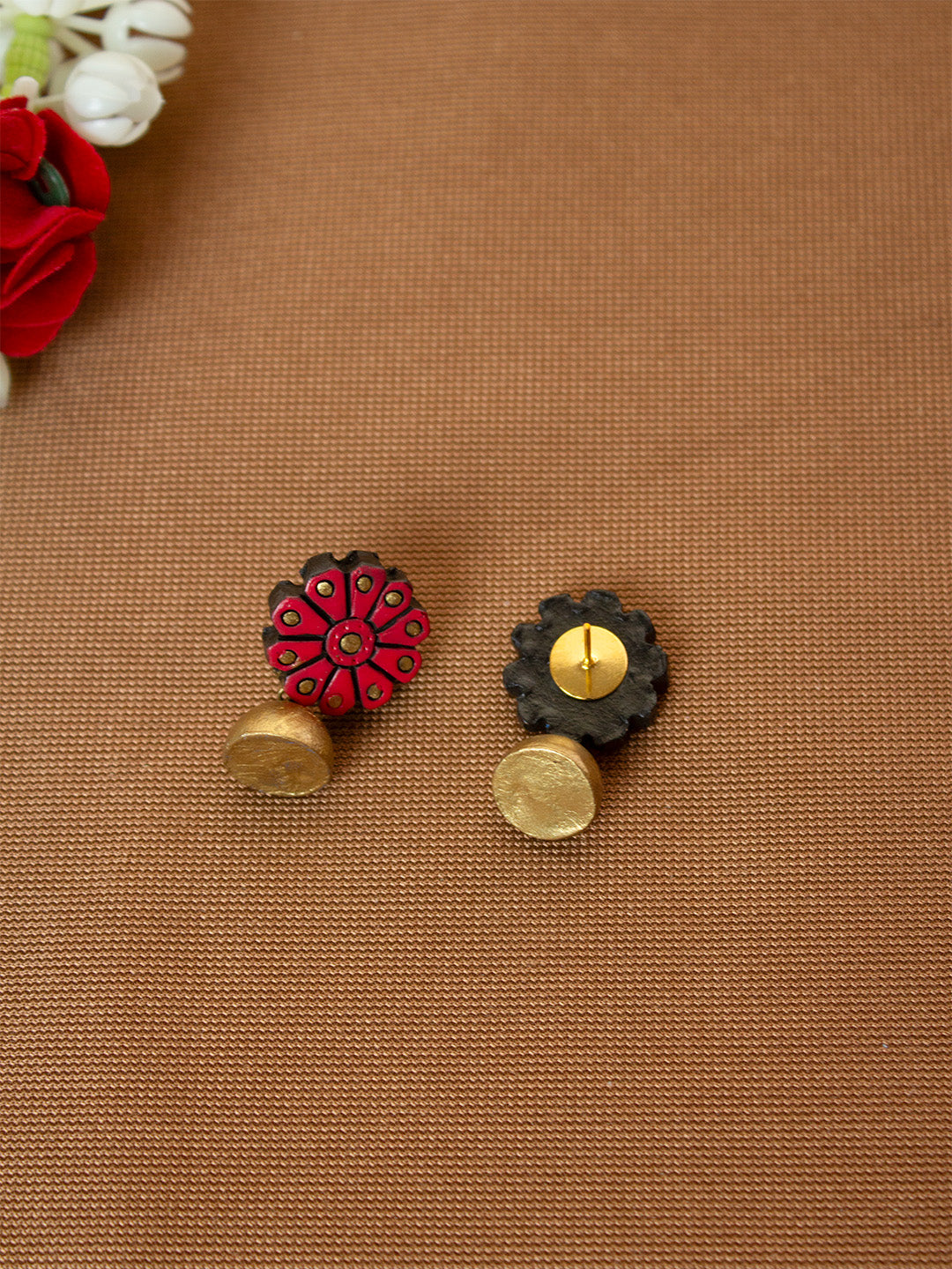 Red and Gold Flower Design Hand-Painted Terracotta Earrings