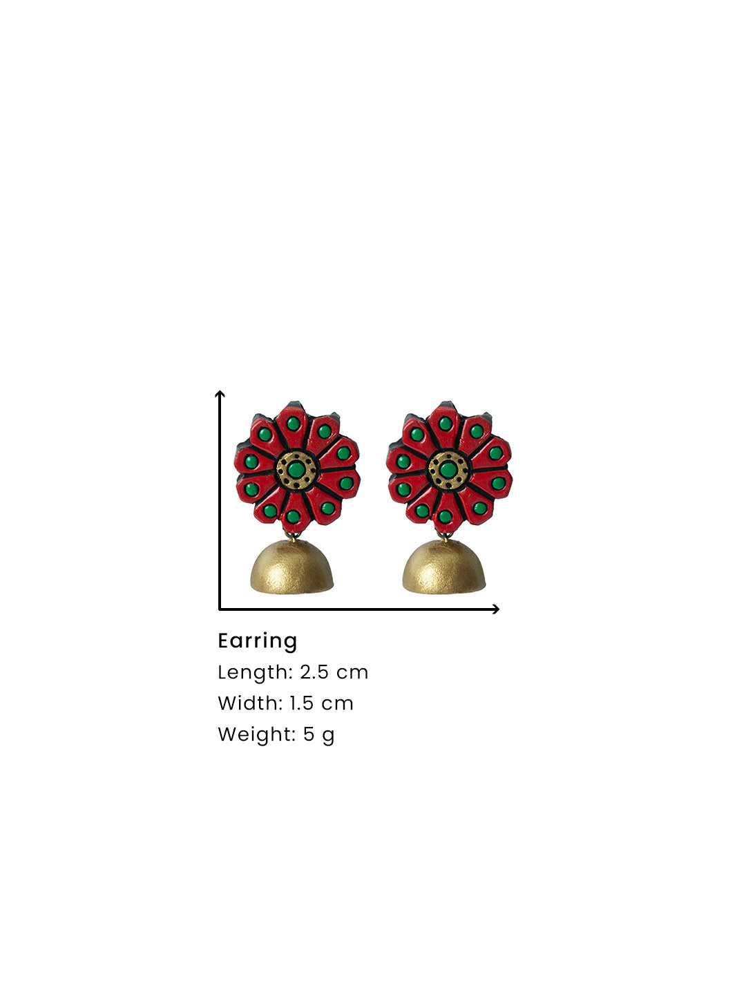 Red and Gold Flower Design Hand-Painted Terracotta Earrings