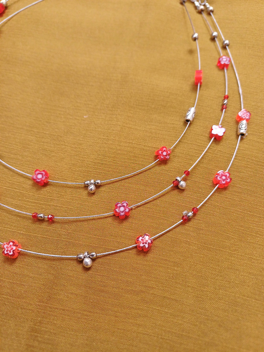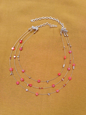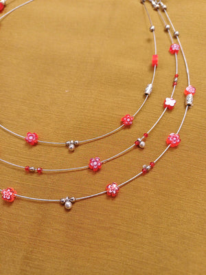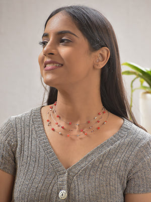 CrimsonBloom – Multi-Layer Red Beaded Necklace with German Silver Accents