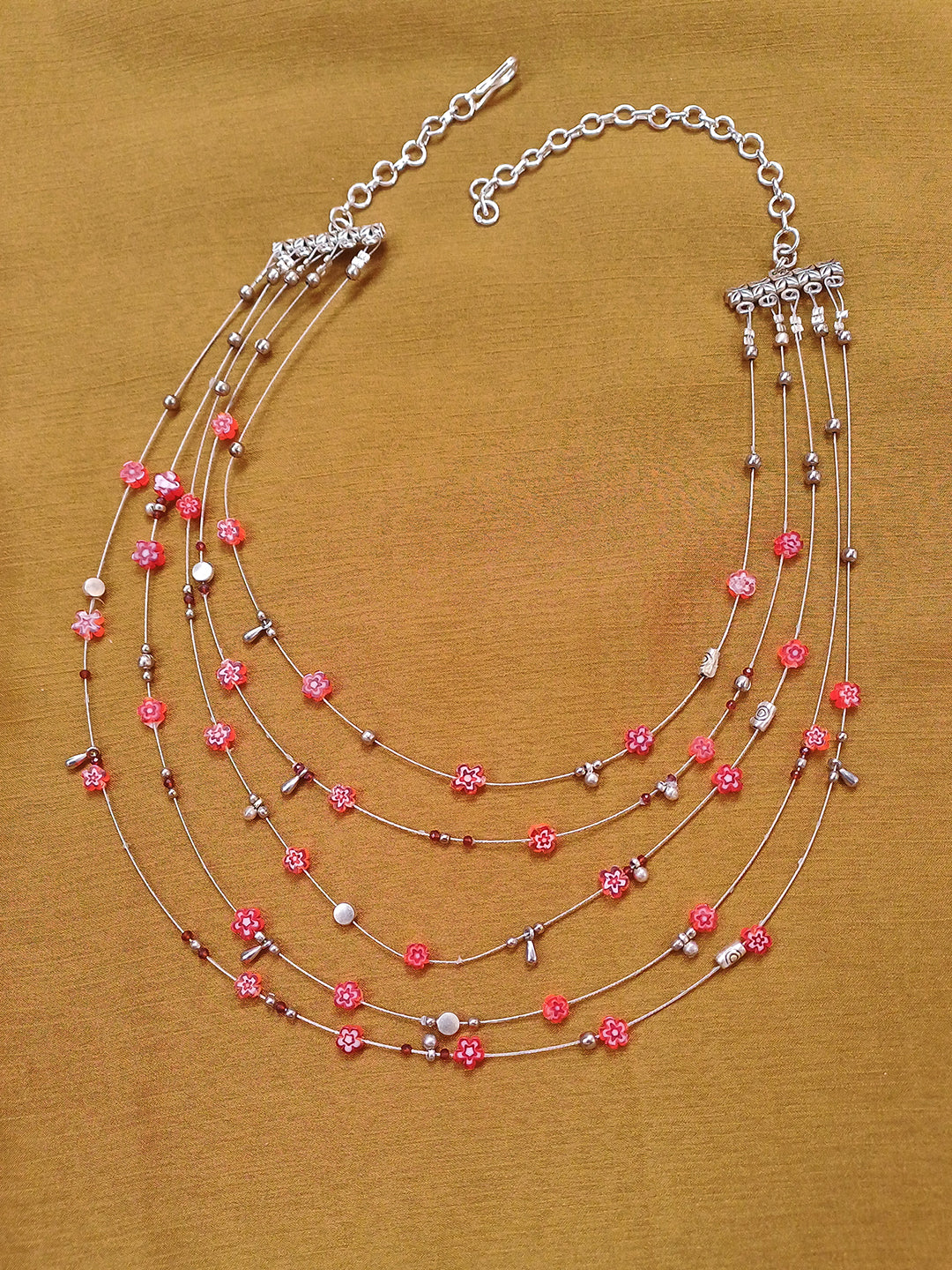 Rosabella – Multi-Layer Red Floral Beaded Necklace with German Silver Accents