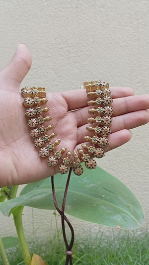 Shonakamala — Antique Gold Toned Red And Black Color Floral Design Motifs Choker Handmade Terracotta Necklace Set - kantara