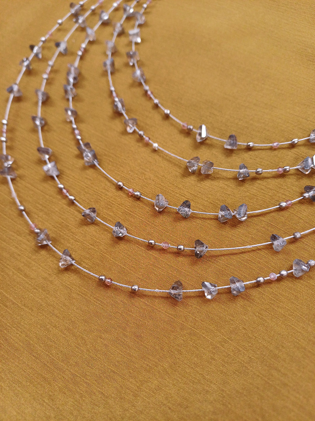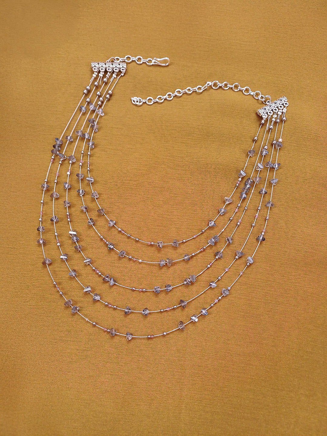 LunaGlow – Multi-Layer Smoky Grey Agate Gemstone Necklace with German Silver Accents, Layered Boho Statement Jewelry
