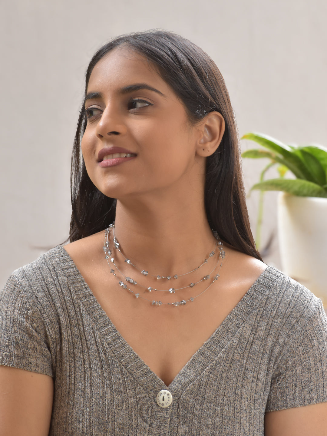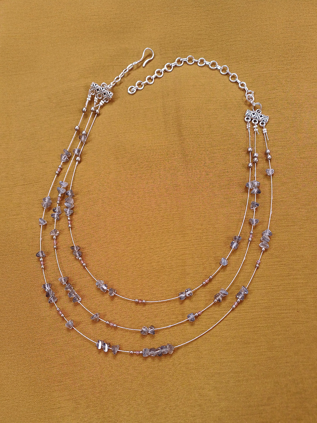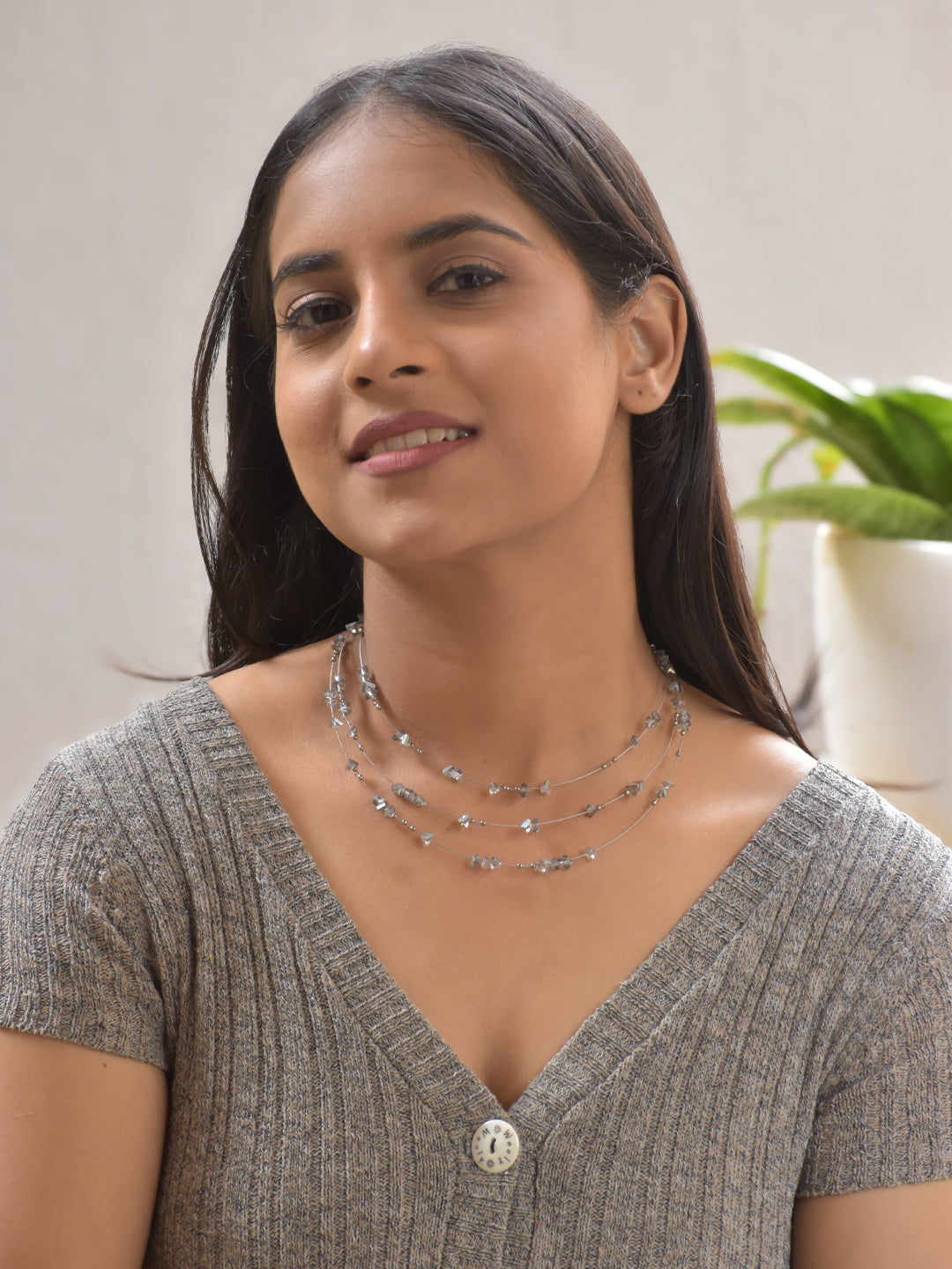 Aurelia – Multi-Layer Smoky Grey Agate Gemstone Necklace with German Silver Accents