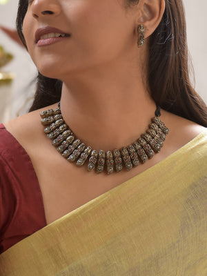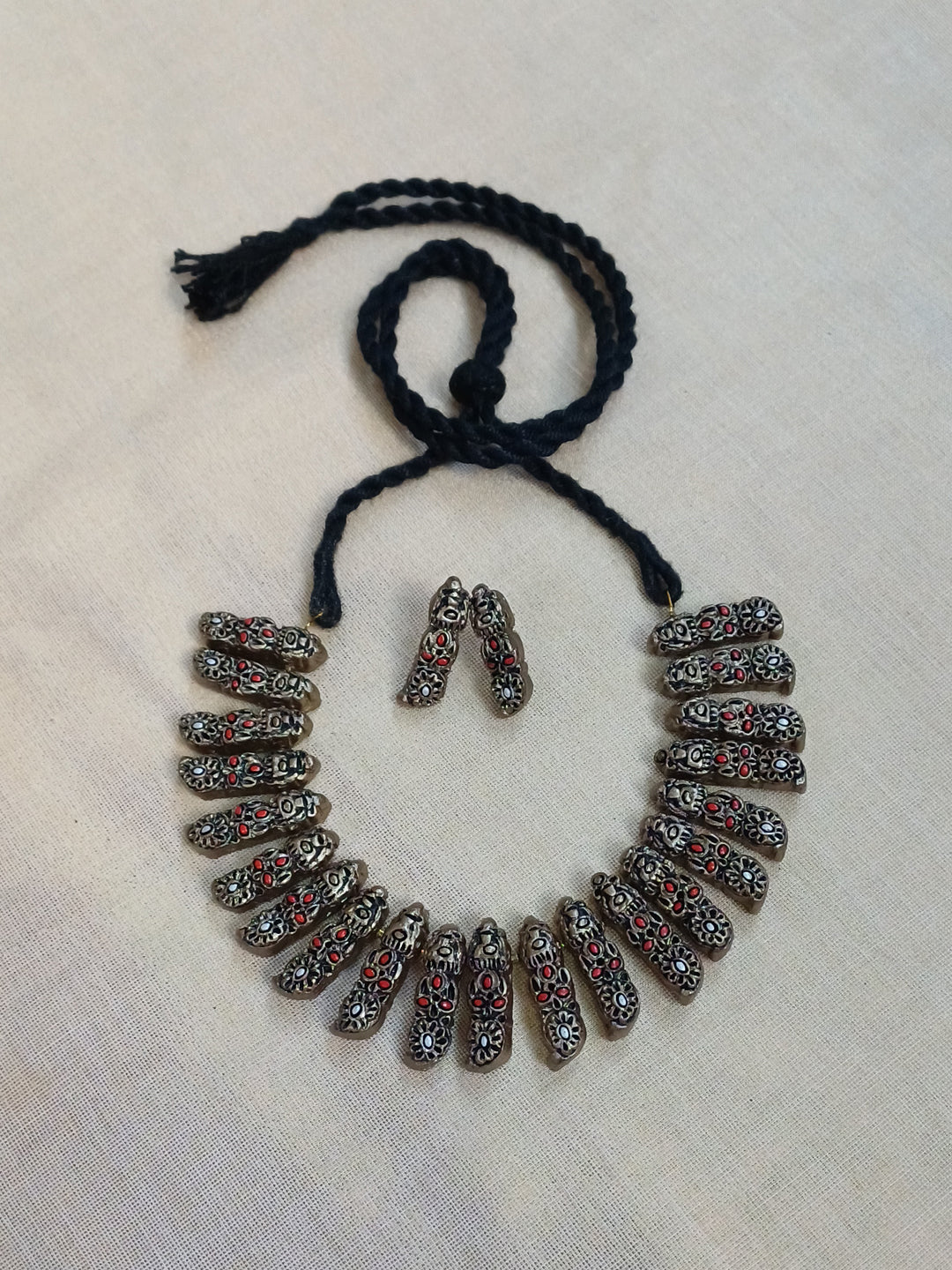 Terracotta Antique Floral Engraved Necklace with Matching Earrings