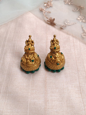 Terracotta Antique Gold Temple Pendant Necklace with Green Thread Cord