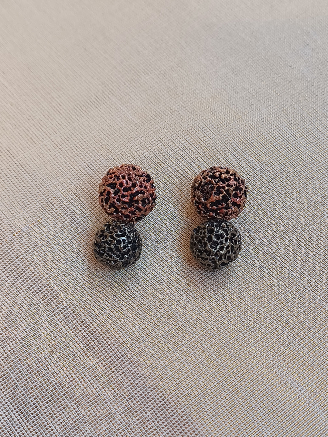 Terracotta Brown Textured Bead Necklace with Matching Earrings