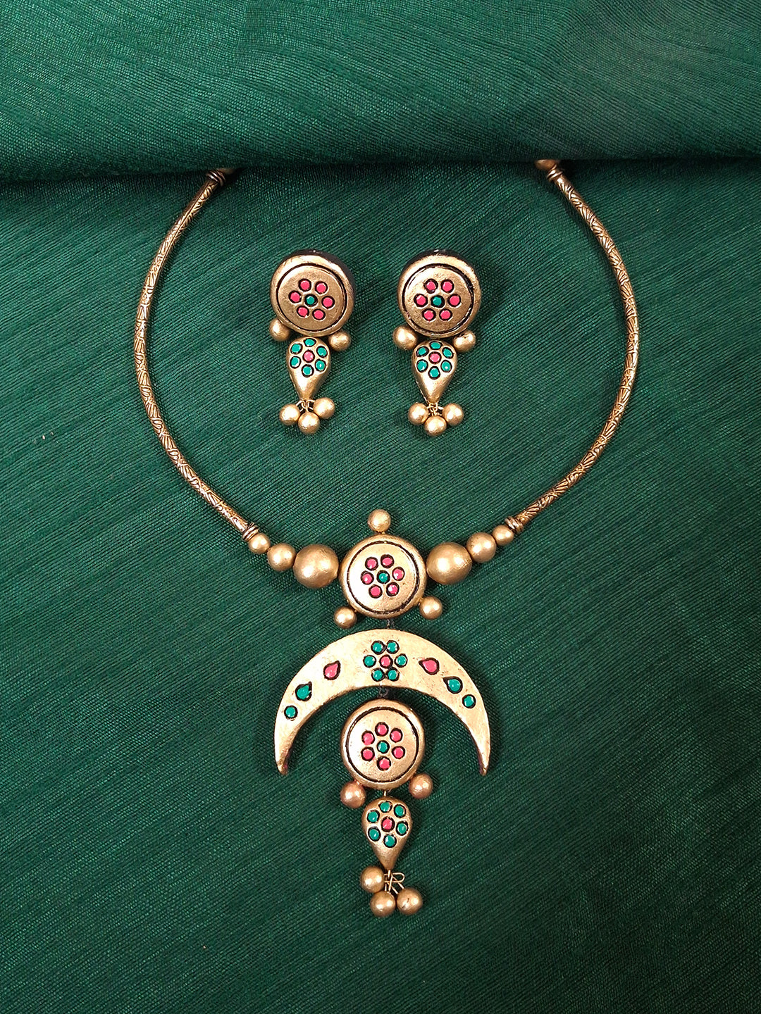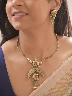 Terracotta Crescent Charm Necklace Set With Jhumkas