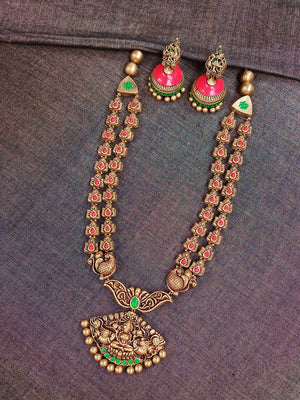 Terracotta Double-Layer Antique Necklace Set with Lakshmi Goddess Pendant