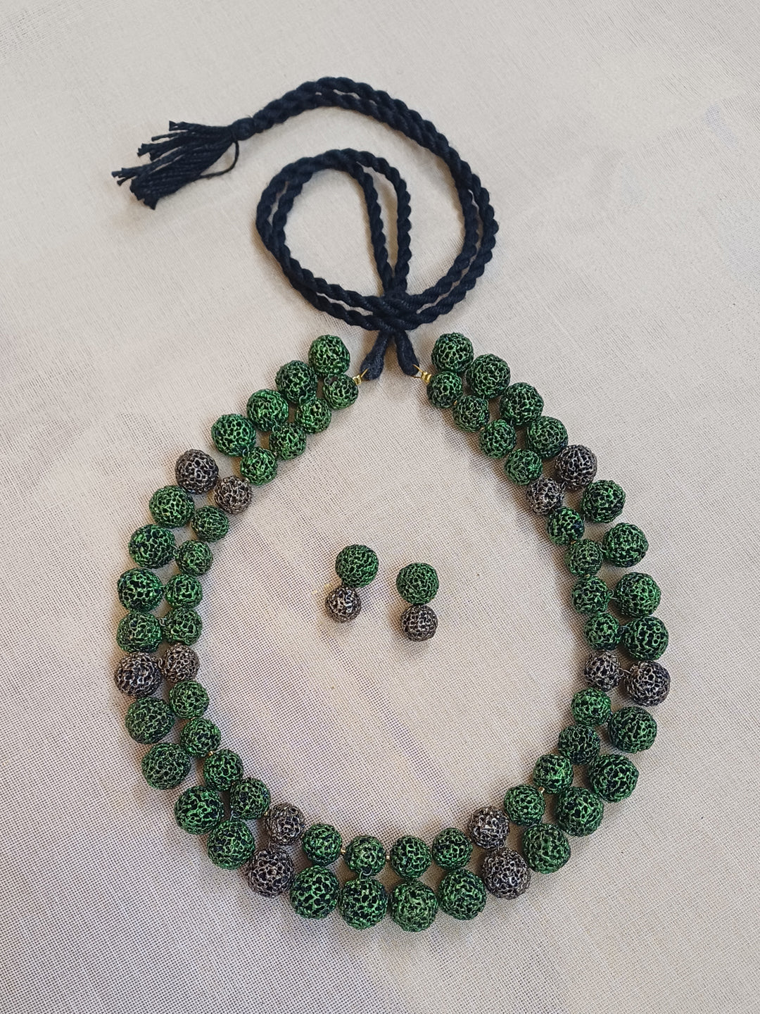 Terracotta Green Textured Bead Necklace with Matching Earrings
