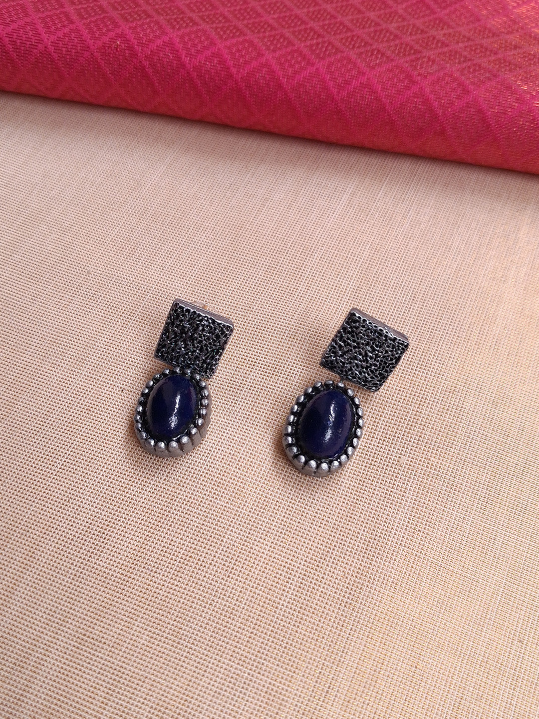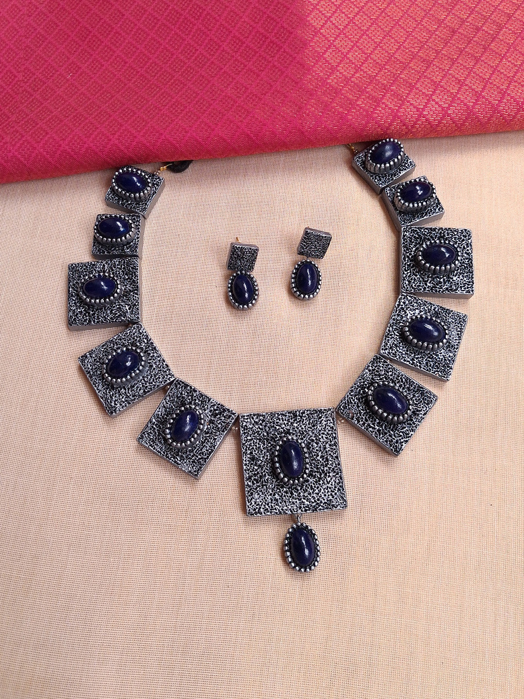 Terracotta Metallic Black and Blue Geometric Statement Necklace Set with Earrings