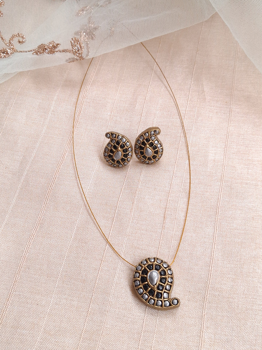 Terracotta Paisley Pendant Necklace with Matching Stud Earrings
