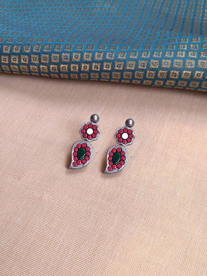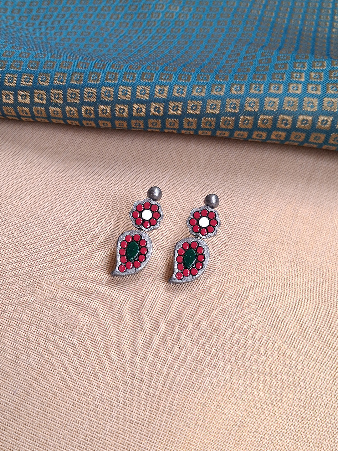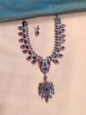 Terracotta Silver-Toned Necklace with Red and Green Paisley Motifs with earrings