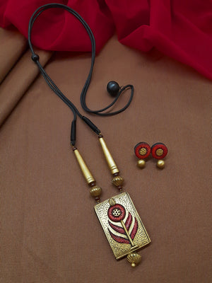 Vilasini — Flower Design Hand Painted Terracotta Jewellery Set - kantara